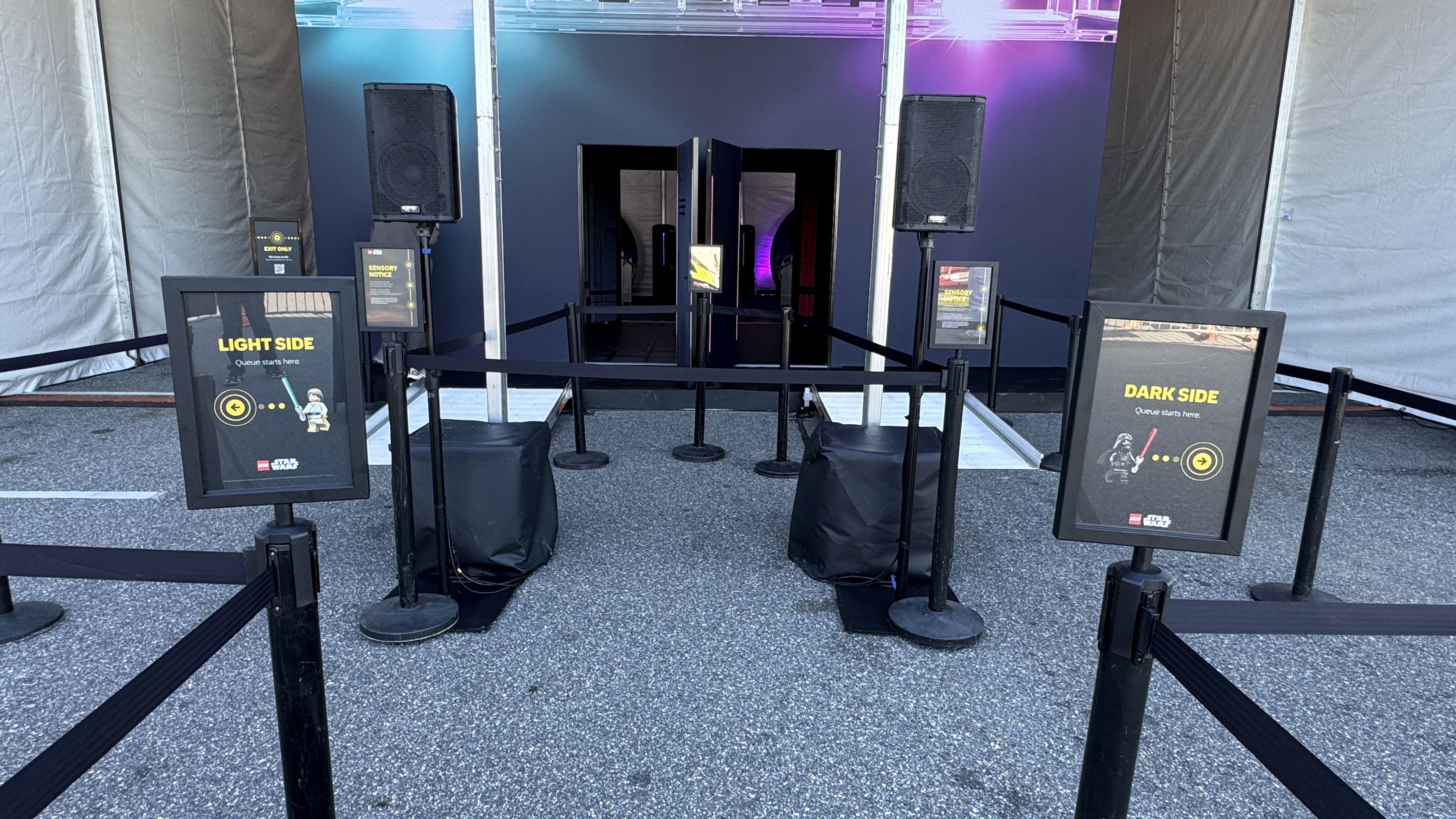 For the limited-time only experience, you will have to sign up in a virtual queue, as the pop-up experience is more intimate in nature, and moves groups along through interactive shows and play. That said, it is possible to that the queue might be cut off shortly ahead of the experience's closing time (6:00 PM). Once called, participants will have the chance to choose the Dark Side or the Light Side for their experience - yes they are different, but don't worry, you'll still get to see all the LEGO Star Wars SMART Playsets.