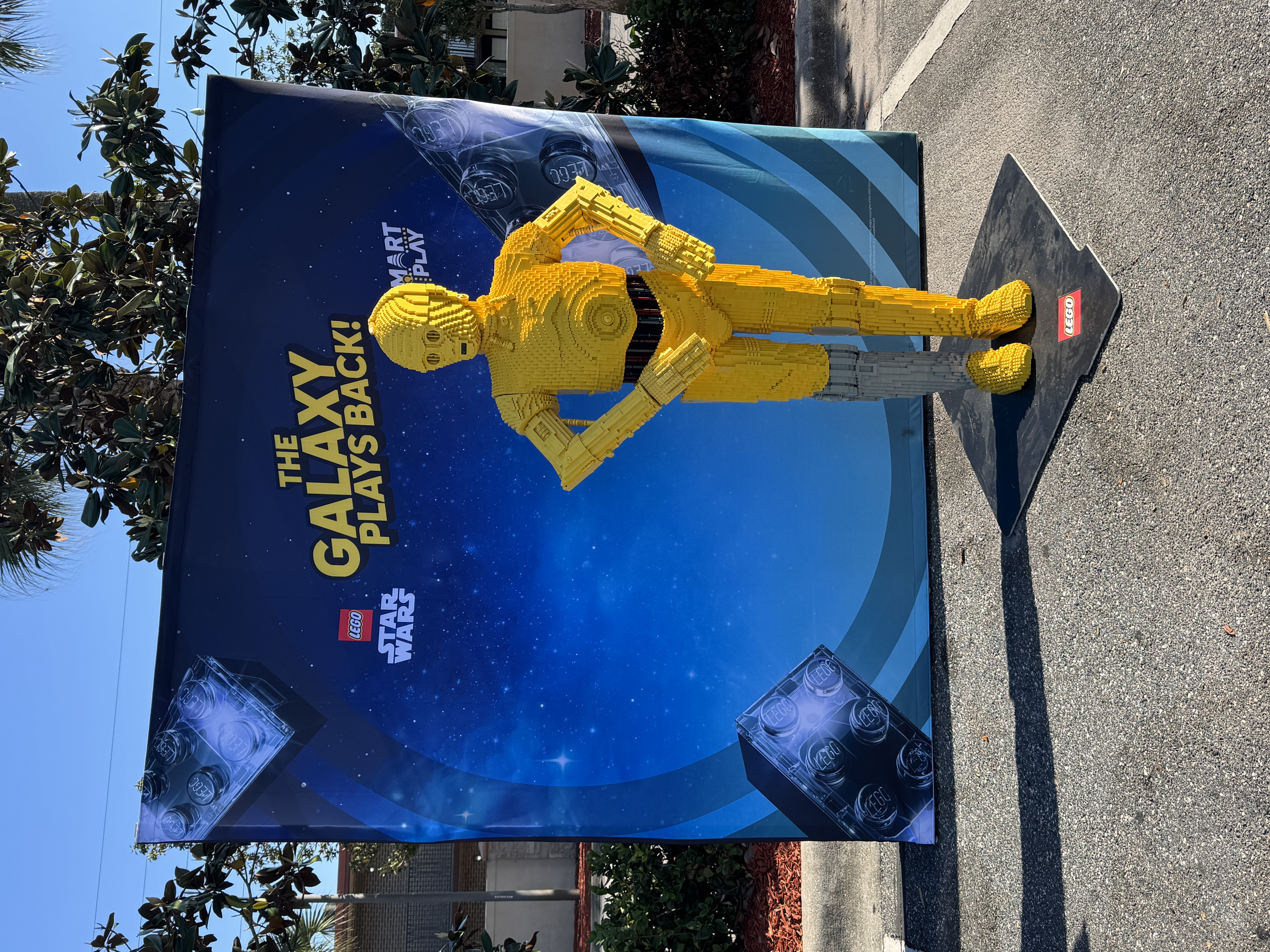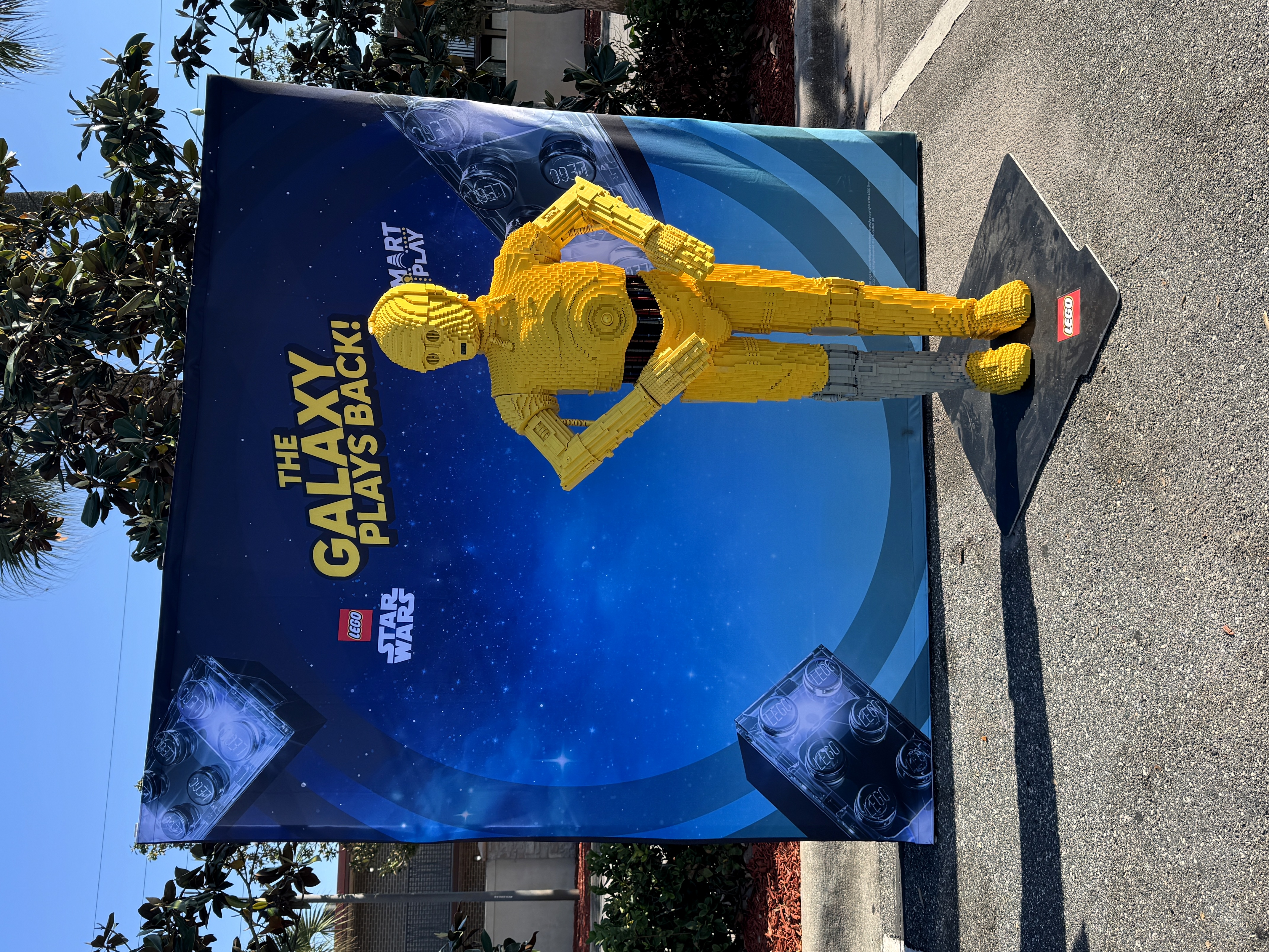 Outside, fans can get pictures with a LEGO sculpture of C-3PO and a fun backdrop.