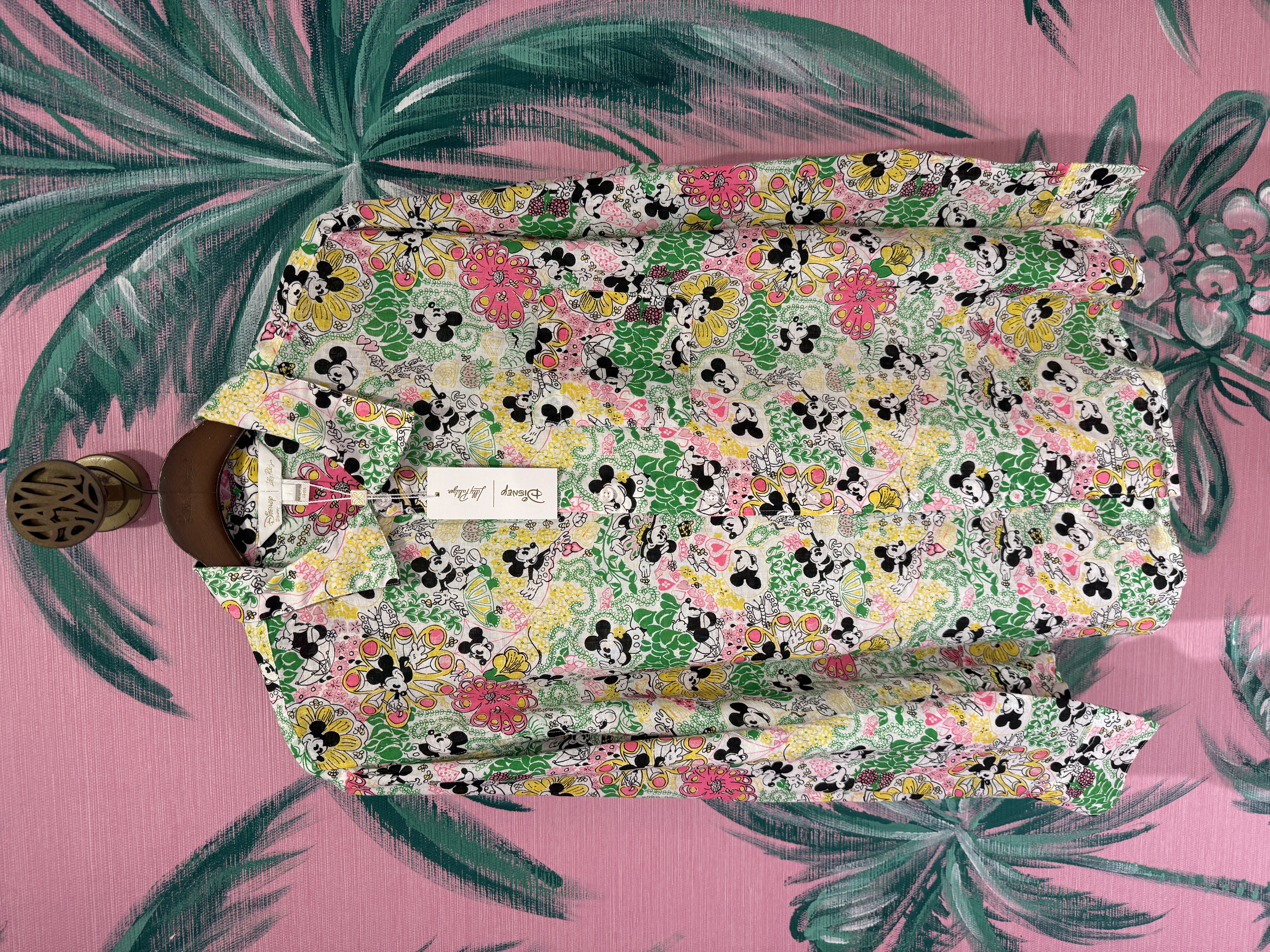 Lilly Pulitzer is bringing back a piece of history with an extra-special surprise from the Lilly Pulitzer archives: the return of a beloved Disney print from 1975! Inspired by an iconic Slim Aarons photograph of Lilly herself framed in a fabric flower, this whimsical design reimagines a classic for today’s Disney lover.