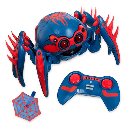 - As with all Spider-Bots, this dude comes with a remote control and can move 360° on its 8 legs. Other interactive elements include light up eyes, sounds, “self-disctuct" and more.
