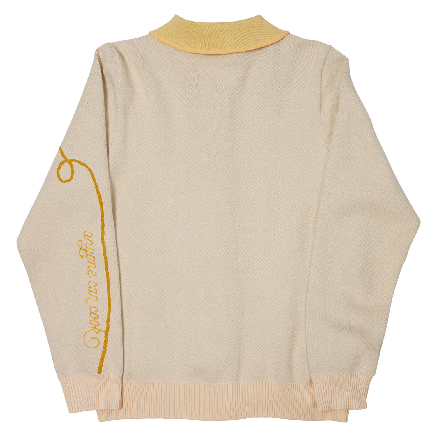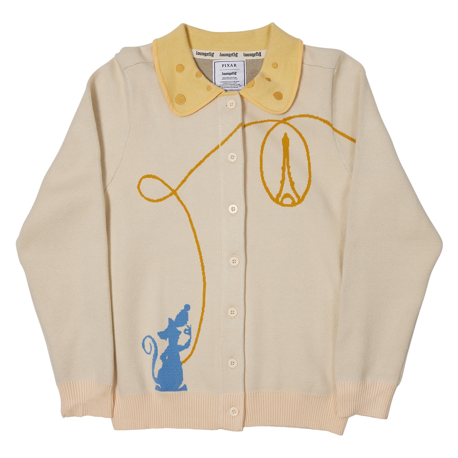 - The last item in drop is a knit cardigan with a silhouette of Remy on the bottom right side, and the Eiffel Tower on the top left shoulder. Along the left sleeve is the message “anyone can cook."