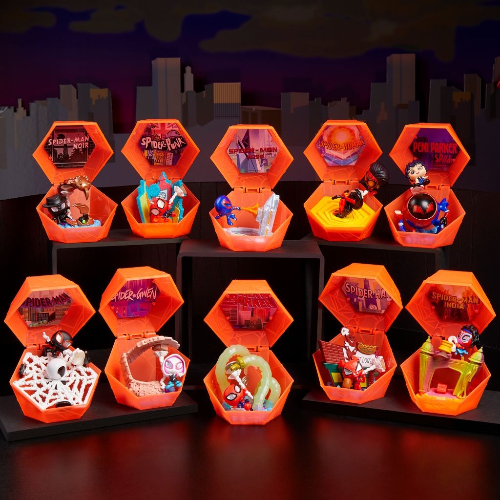 Marvel Doorables Spider-Verse Collector Capsule invites fans into one of 10 surprise scenes inspired by the Spider-Verse animated films. Each capsule includes a suction-cup-based collectible figure sculpted in a web-slinging pose. Perfect for displaying on mirrors, fridges, or desks, these glitter-eyed heroes also retail for $10.99 and are suitable for ages 5+.