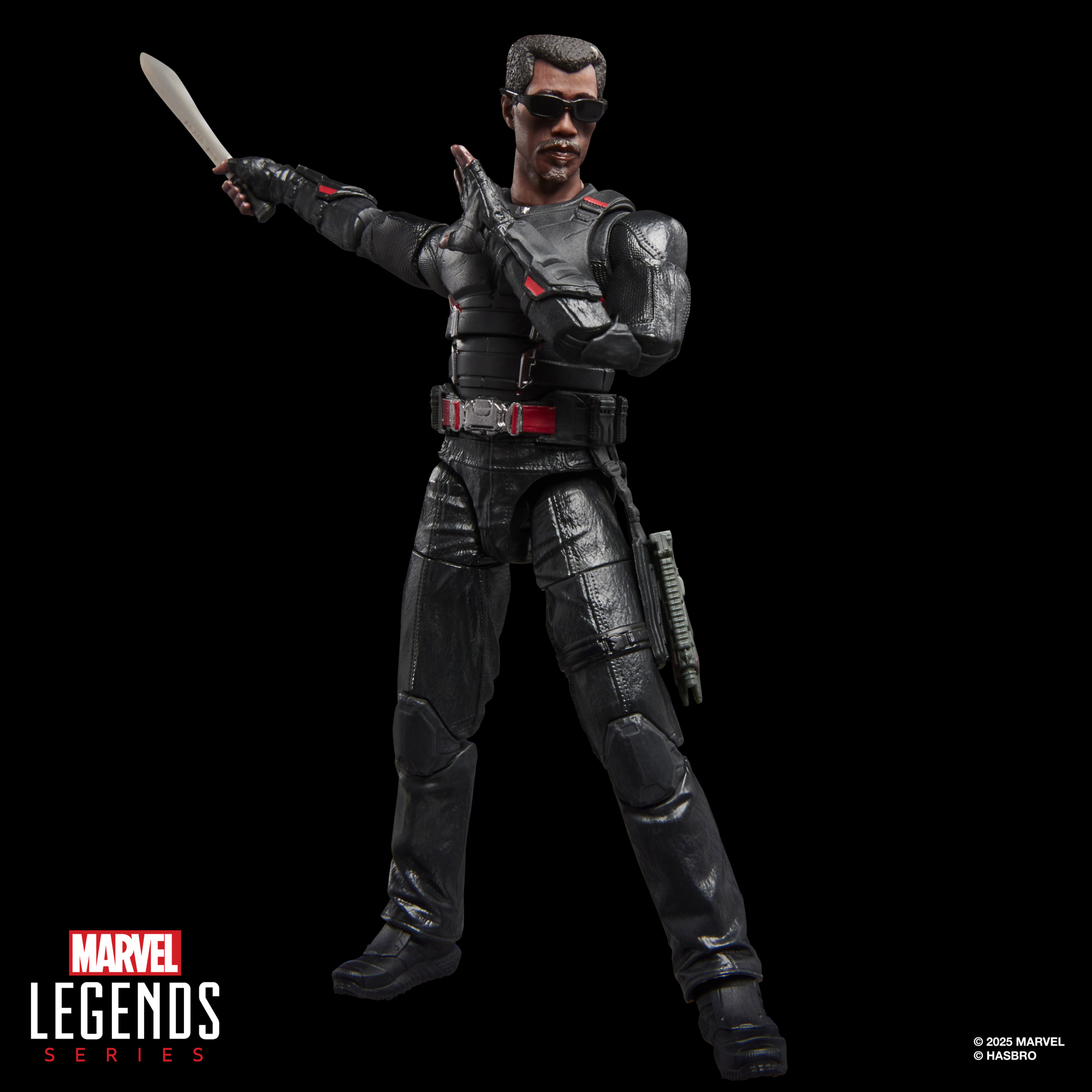 This Marvel's Blade figure is fully articulated with premium design and poseable head, arms, and legs. The Marvel action figure set comes with 7 accessories, including an alternate head, 2 pairs of sunglasses, set of alternate hands, knife accessory, and blaster. Hasbro Marvel action figures' 6-inch scale make them great for displaying in fans' collections. Reimagine movie-inspired scenes on your shelf with Marvel Legends action figures and Marvel collectibles (each sold separately, subject to availability).