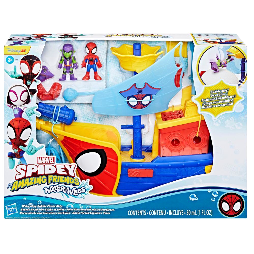 - For younger superhero fans, our friends at Hasbro have released the new Marvel Spidey and his Amazing Friends Water-Webs Webs Ahoy Bubble Pirate Ship ($49.99), which includes poseable Spidey and Green Goblin figures.