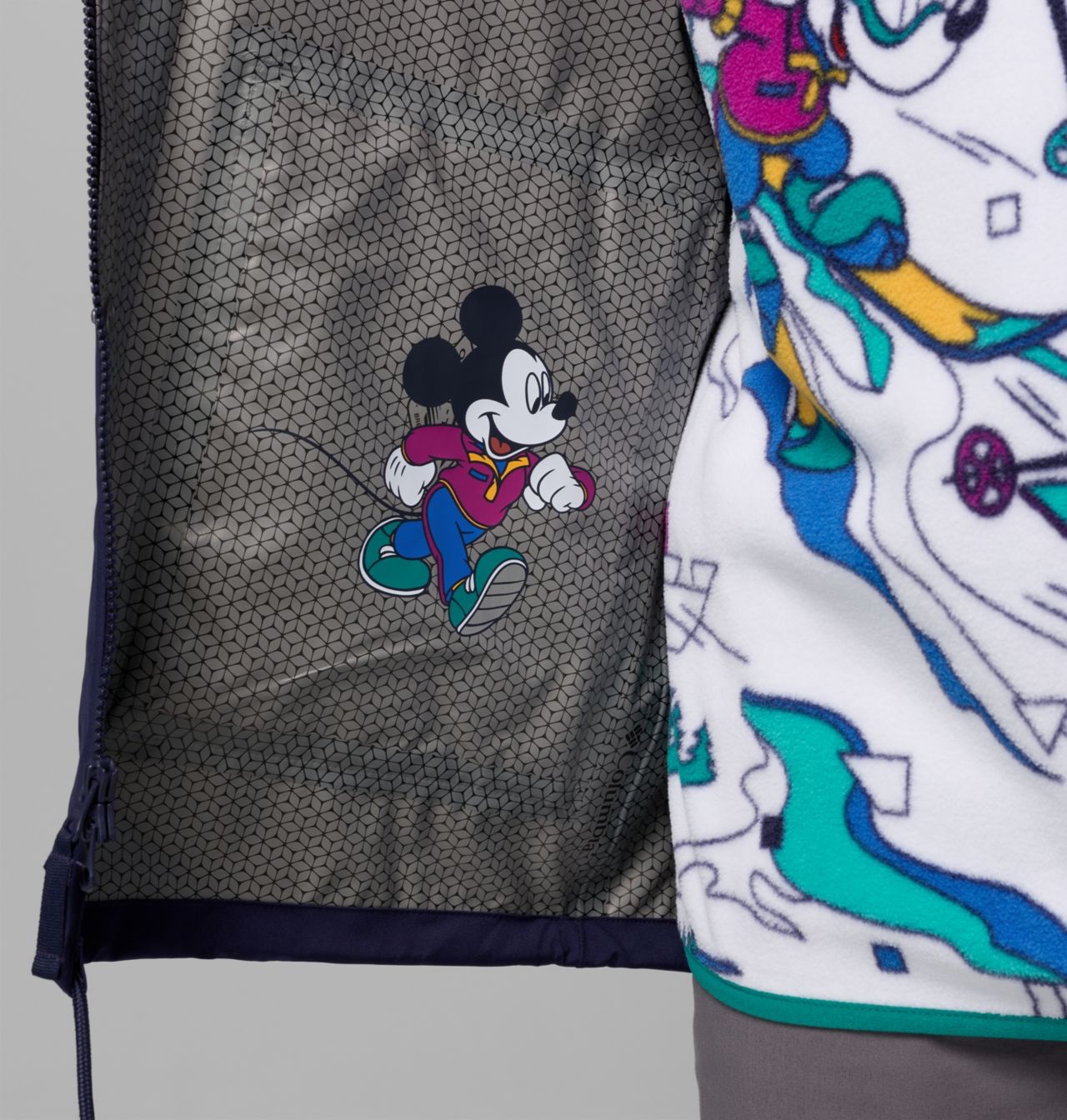 - Feel peak winter comfort in this special-edition fleece with ‘90s-inspired prints featuring Disney’s Mickey & Friends on a dream ski vacation. With binding on the cuffs and hem, cold stays out and warmth stays in. The women’s style is a cropped pullover with an adjustable toggle hem. All styles feature a zippered chest pocket with a convenient pull tab to secure valuables.