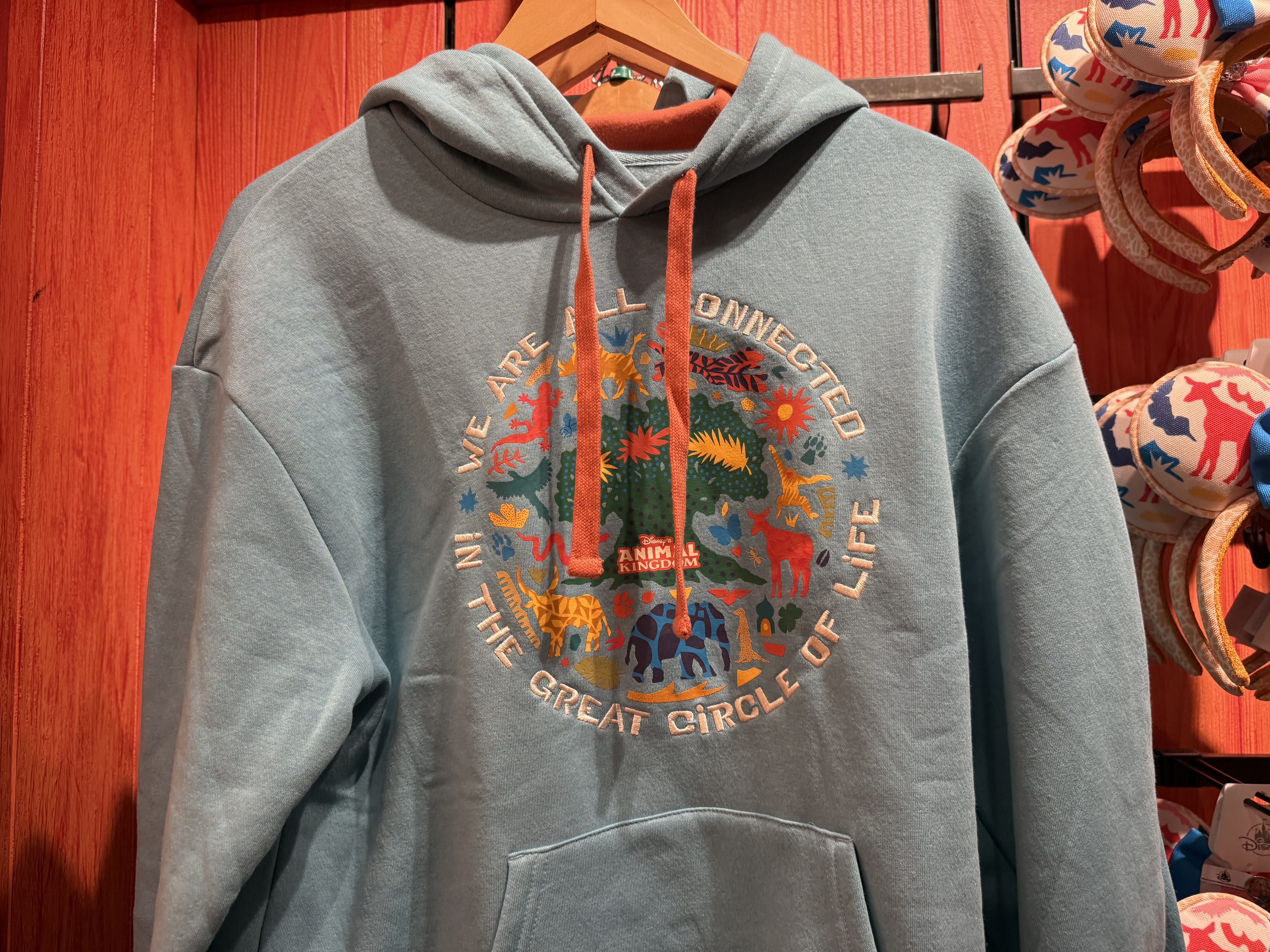 While the eyes of many visitors might be on the new merchandise for the Merry Menagerie, there is also an entirely new collection for Disney's Animal Kingdom in general. The message is celebrating the great "Circle of Life," without overtly being connected to The Lion King. You'll find variations of this new design on shirts, sweaters, a Loungefly backpack, mouse ears, and much more.