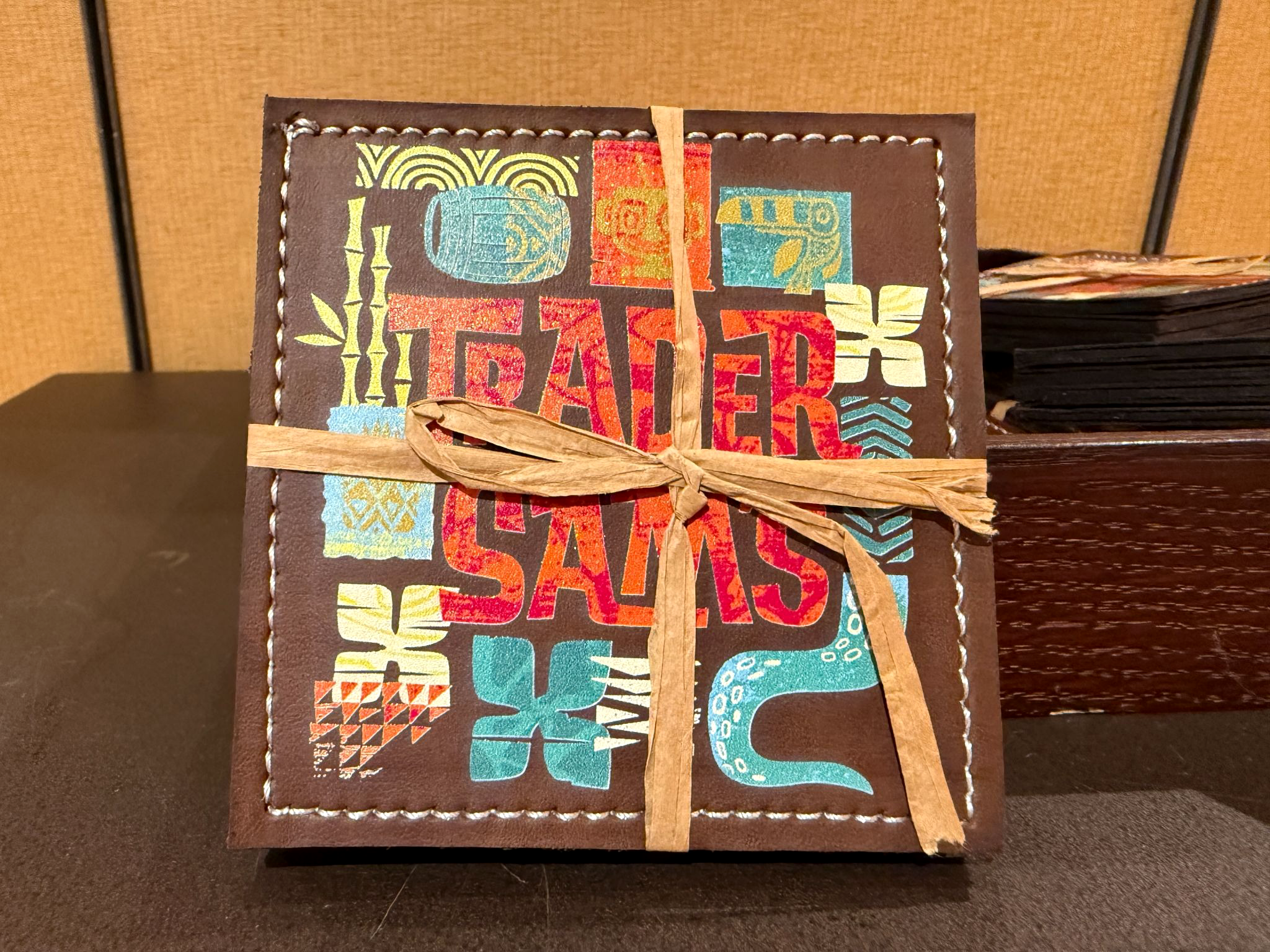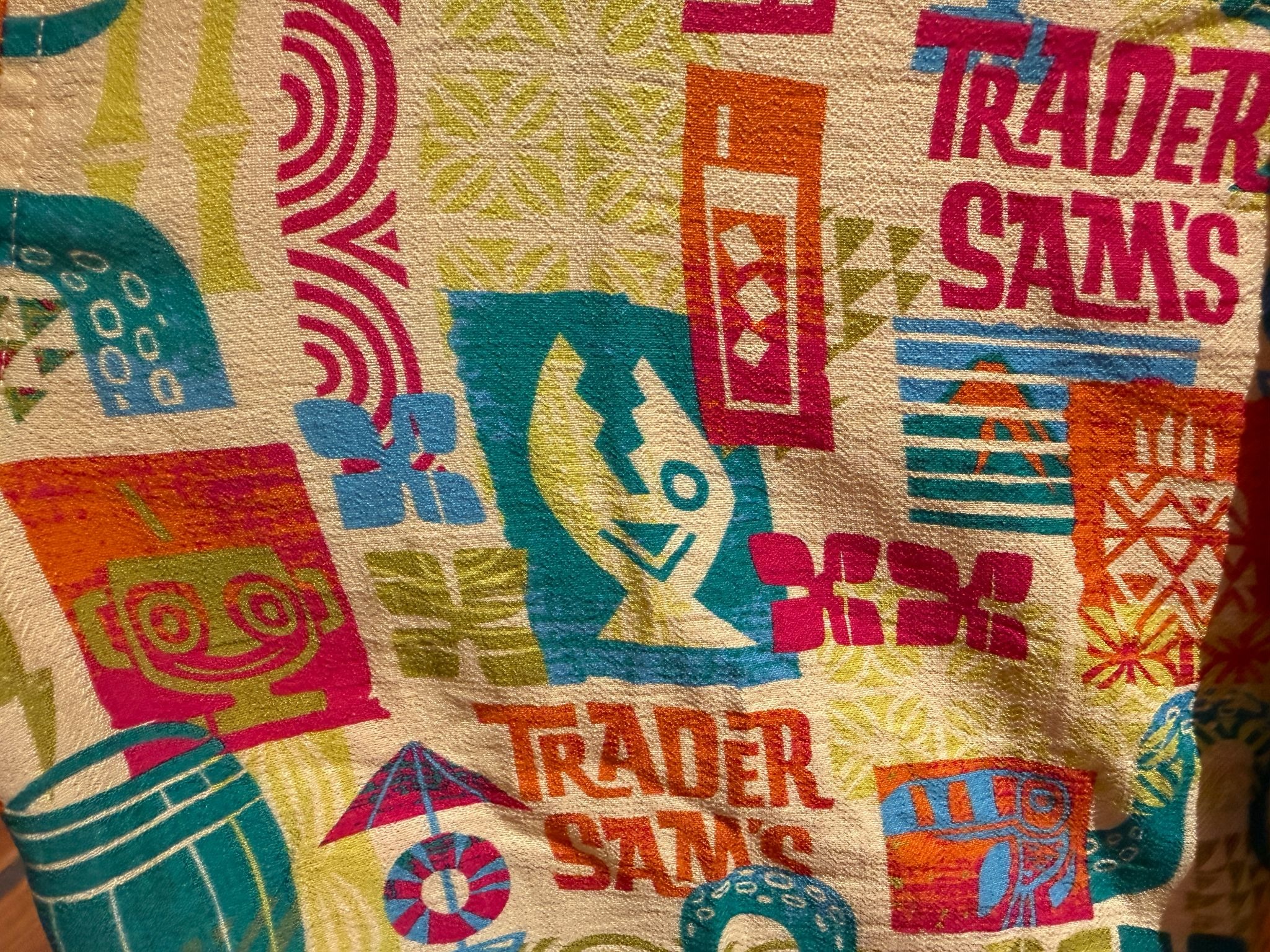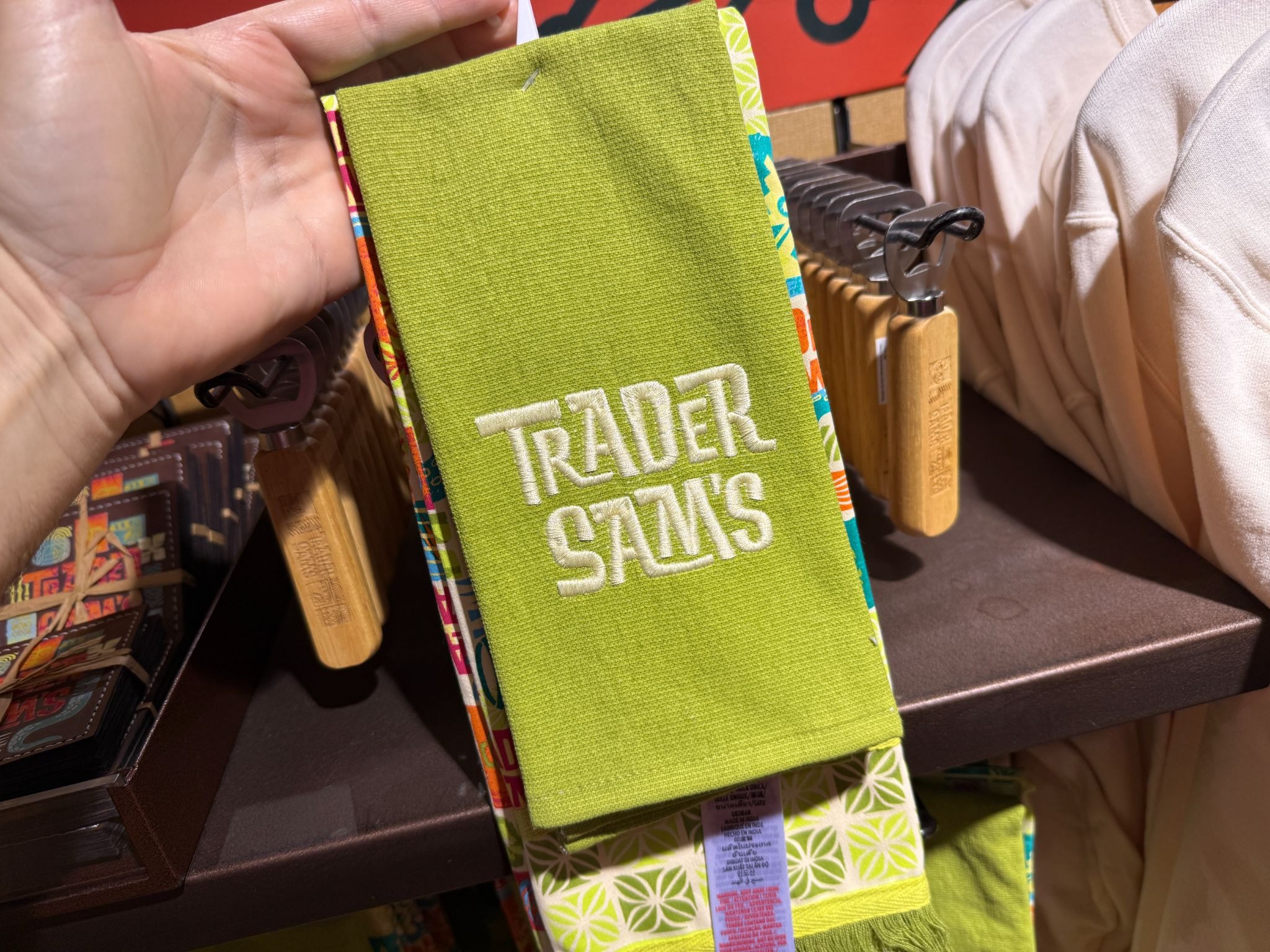 You can also get new Trader Sam’s items featuring the logo on a set of coasters and a kitchen towel, both for $27.99.