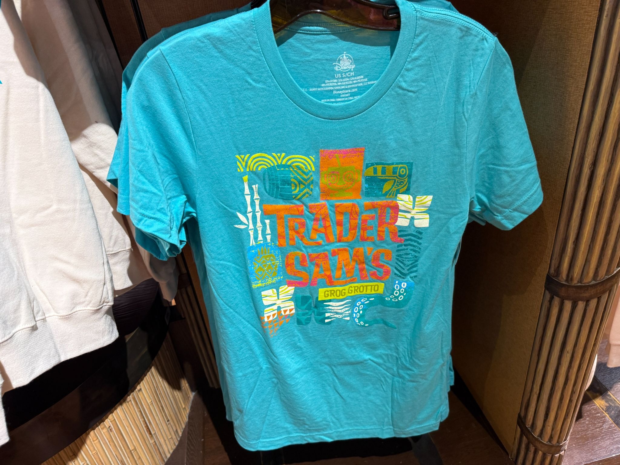 While Disneyland has a yellow tee with the Trader Sam’s Enchanted Tiki Bar logo, the east coast instead has a blue shirt ($34.99) with the same design, just swapping in the Grog Grotto.