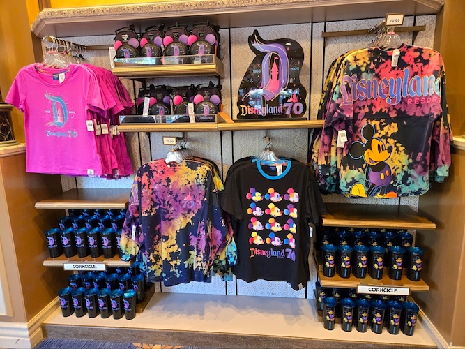 - Current visitors to Disneyland can already get in the celebratory mood, as the first line of 70th anniversary merchandise has hit store shelves.