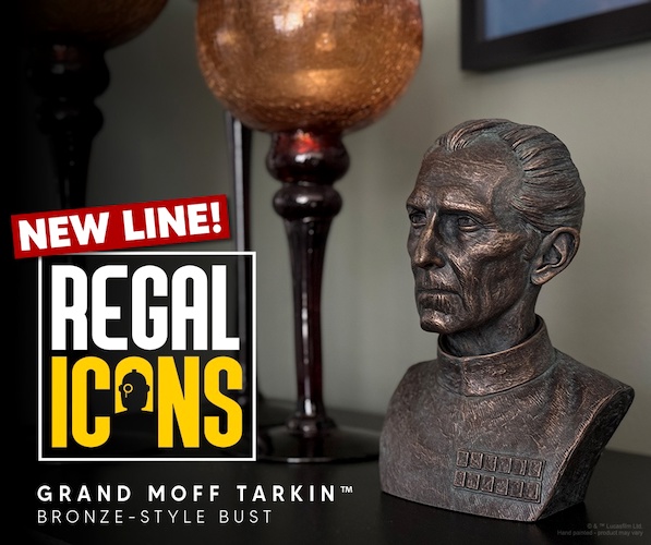 “Before your execution, I would like you to be my guest at a ceremony that will make this battle station operational." One of the most memorable scenes in the original 1977 Star Wars film (now called Episode IV - A New Hope) takes place on the Death Star between Grand Moff Tarkin and Princess Leia. And now you can own very nice-looking busts of these two characters thanks to the new Regal Icons line from Regal Robot.