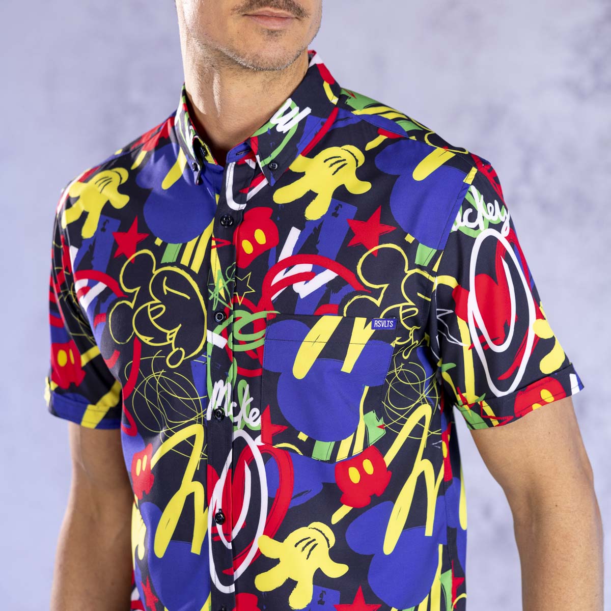 Mickey Mouse stars on a variety of styles including performance tees, v1 & v2 lined training shorts, and since it’s RSVLTS, there’s a Kunuflex button-down shirt in the mix.