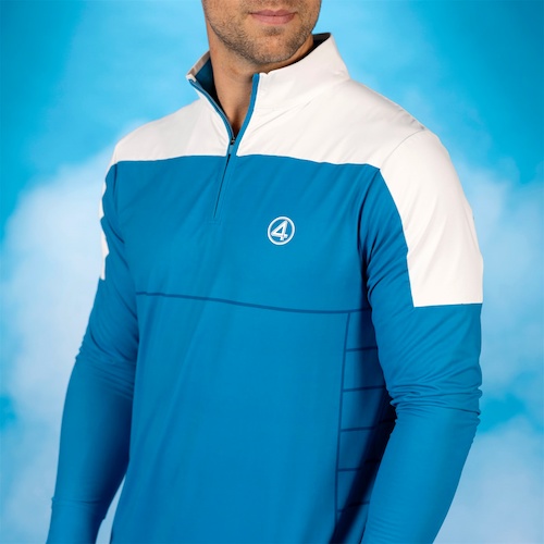 The other designs that have us delighted are the “Fantasti-Zip" and “Fantasti-Polo," that perfectly mimic the outfits worn by the whole team. Simple and sleek, the top shoulder portion is stark white while the rest of the look is bright blue. A small “4" logo on the chest is the ideal finishing touch.