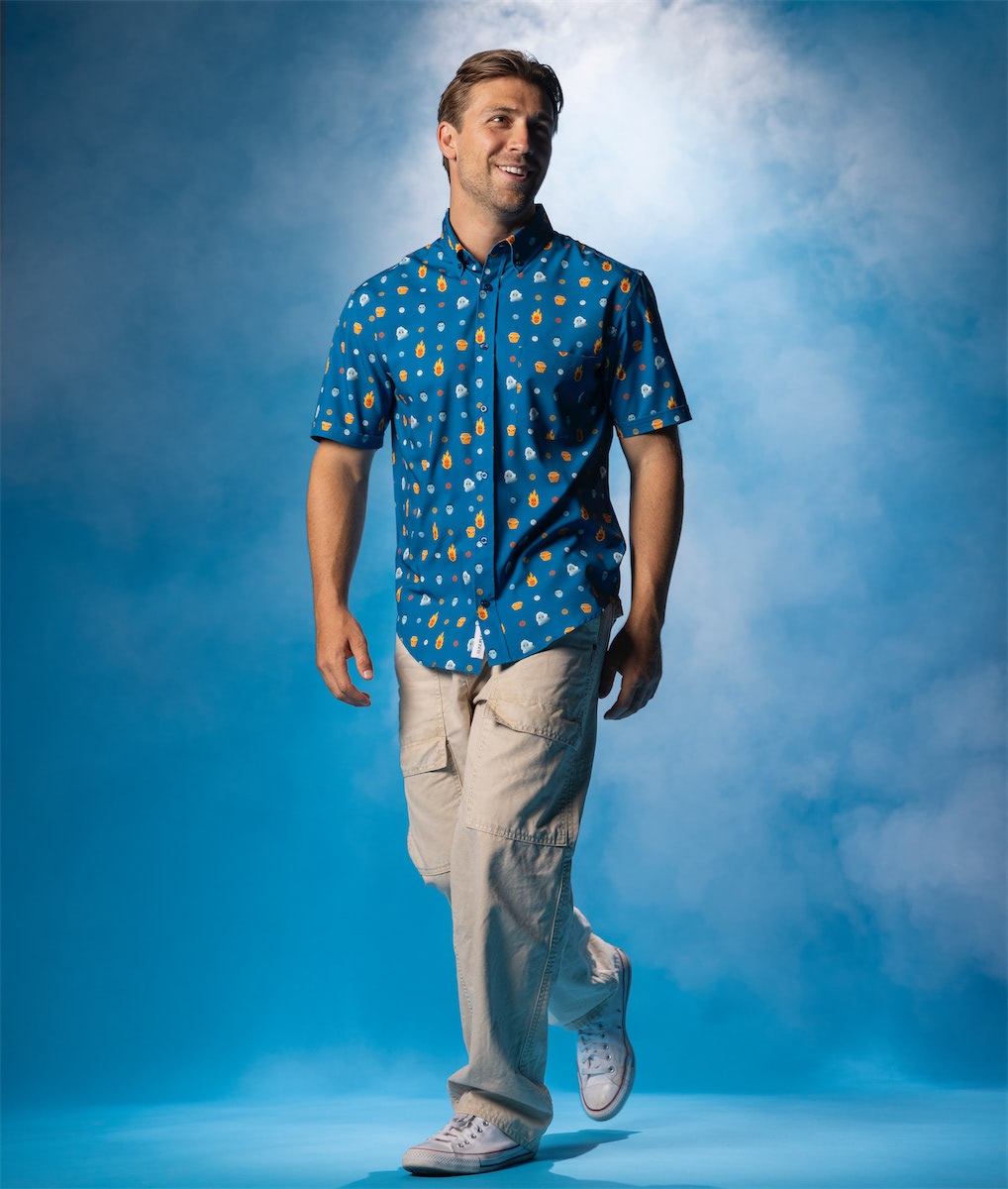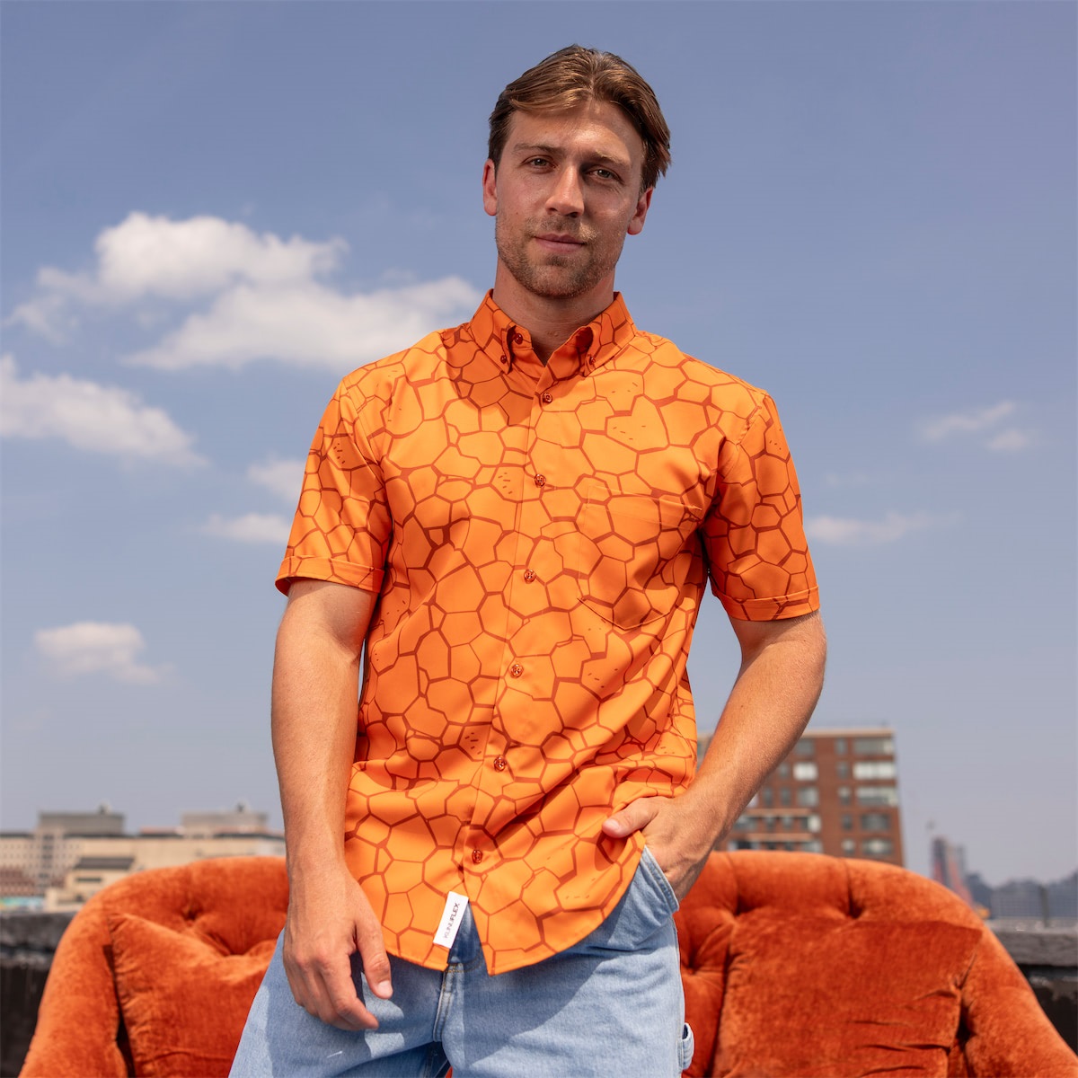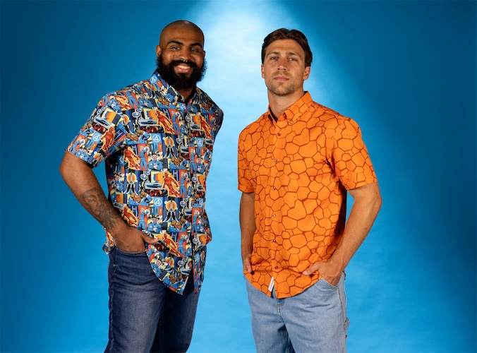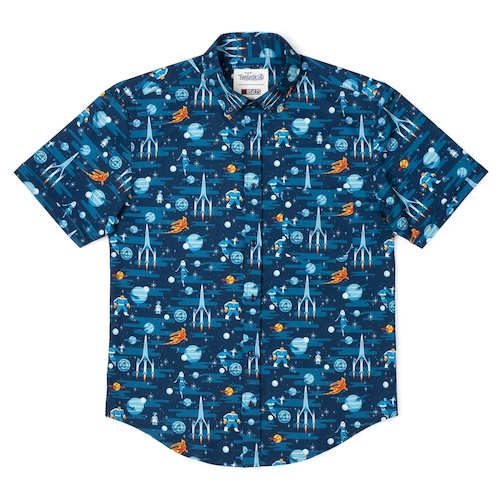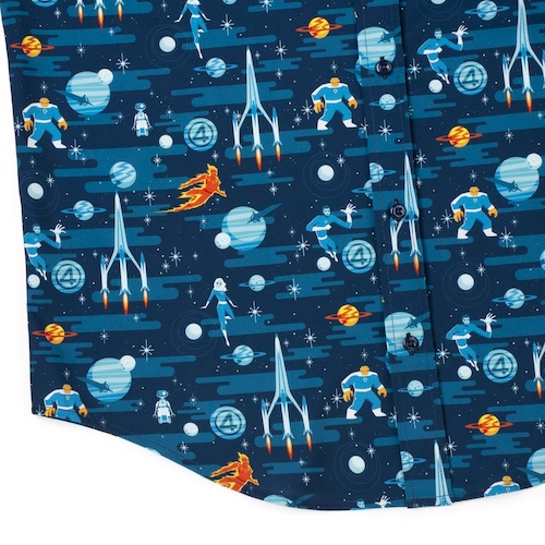 With 8 great looks to choose from there’s something here for every fan, but we have a feeling we know which designs will have the greatest appeal. Ben Grimm/The Thing takes the spotlight on a Kunuflex button-down, “Clobberin’ Time," that features the signature orange hue and rocky composition of his massive body.