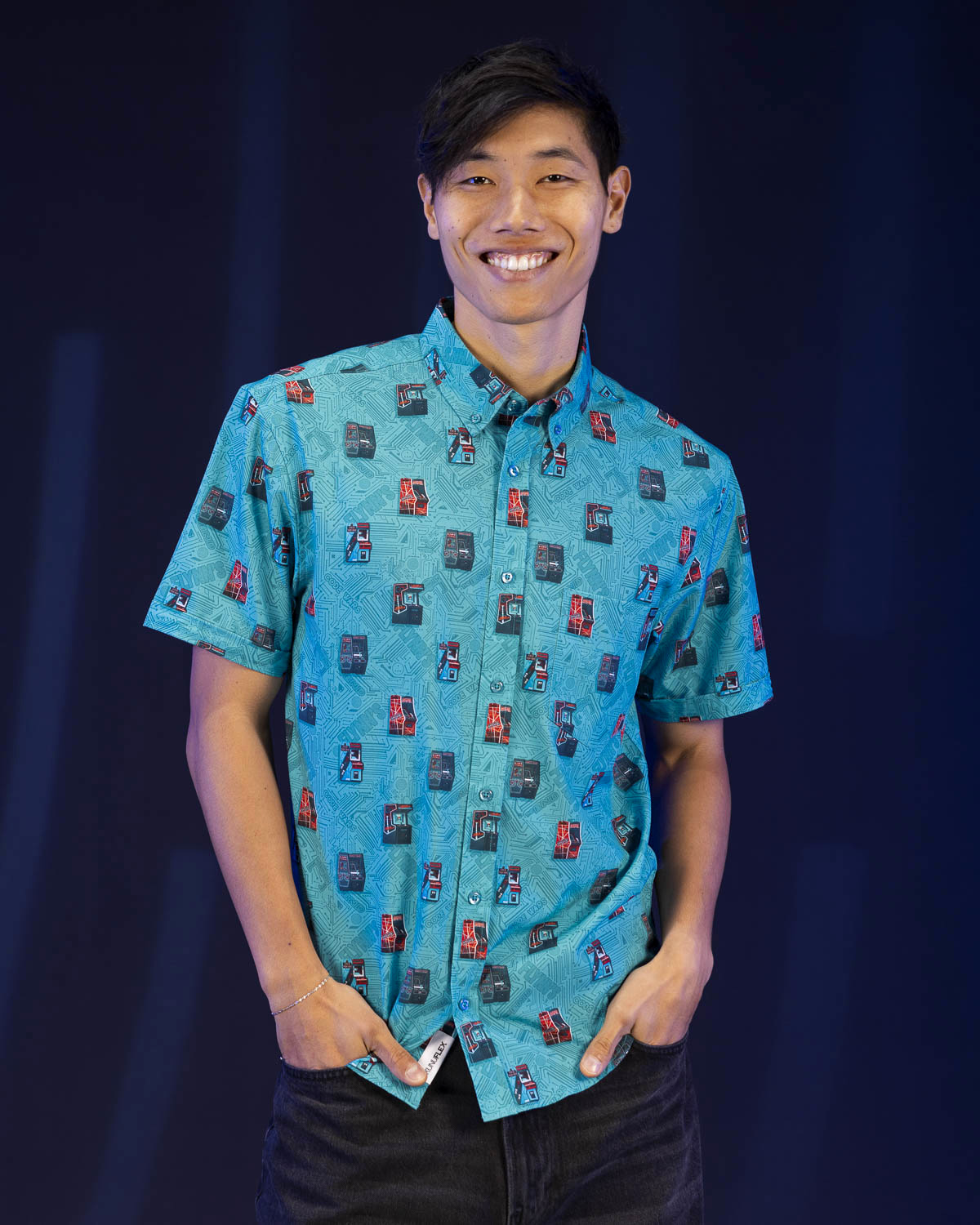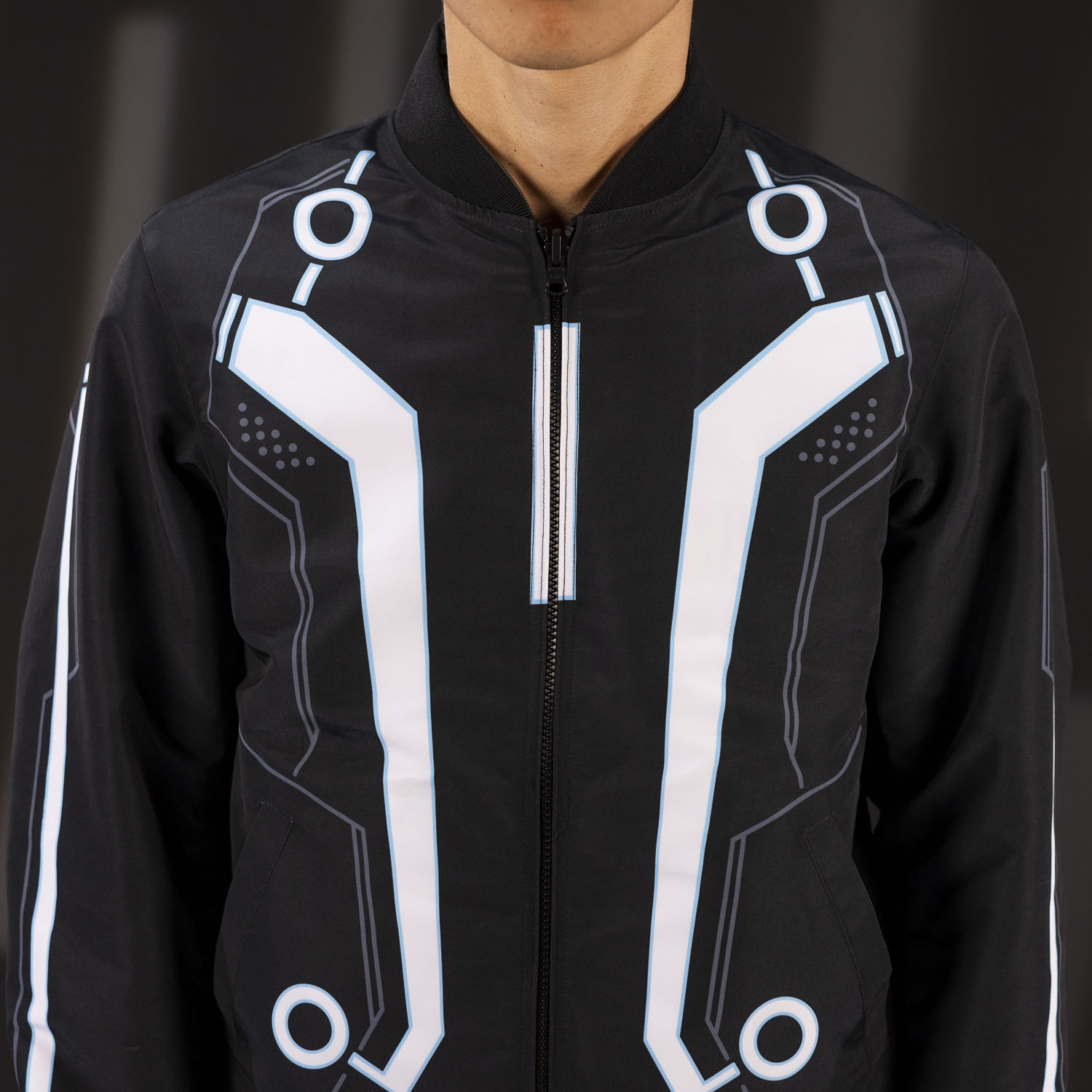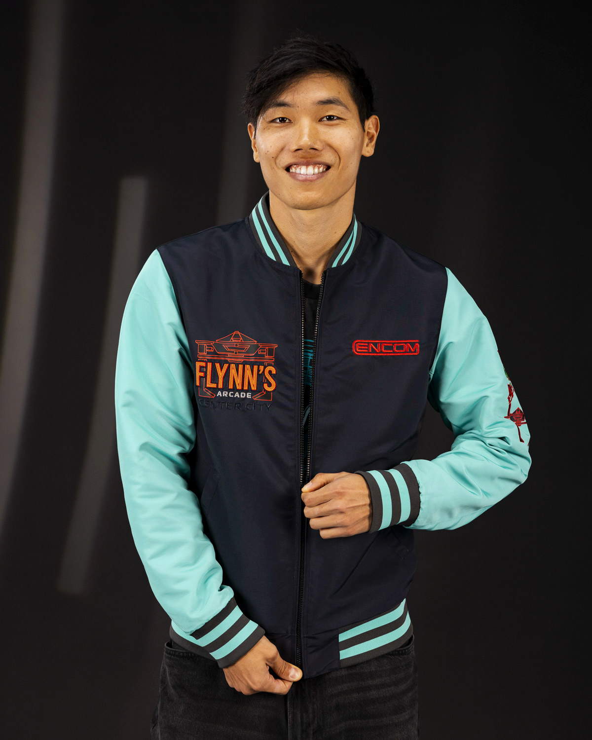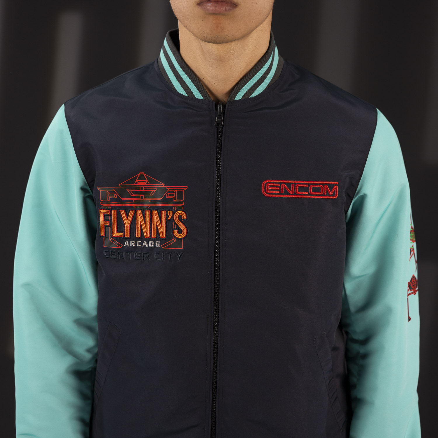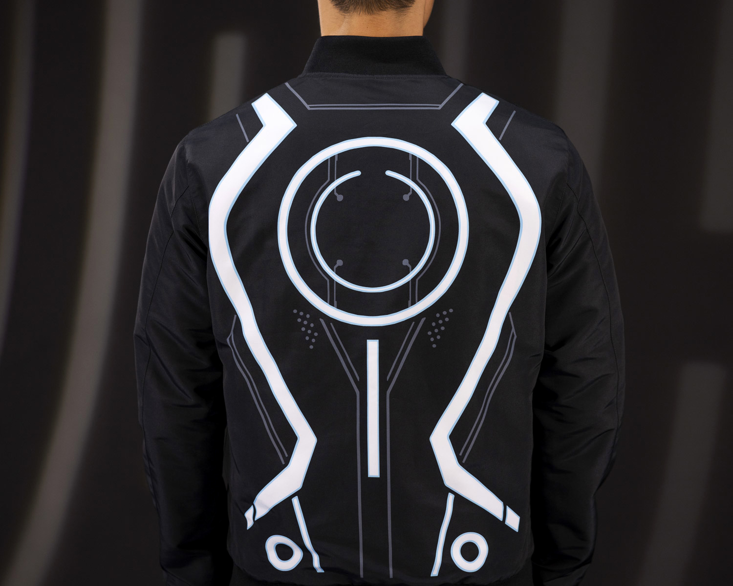 You can complete your look with a dad hat; or the star piece of the collection is a reversible bomber jacket that features the Light Suit on one side and Flynn's Arcade iconography on the other! See you on the Grid!