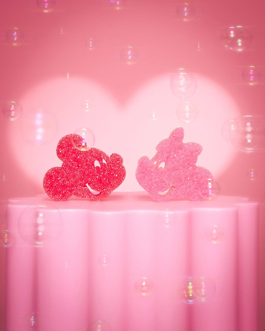 - A red Mickey scrubber and pink Minnie scrubber contain the iconic shape of their heads, performing the same scrubbing tasks as a regular Scrub Daddy.