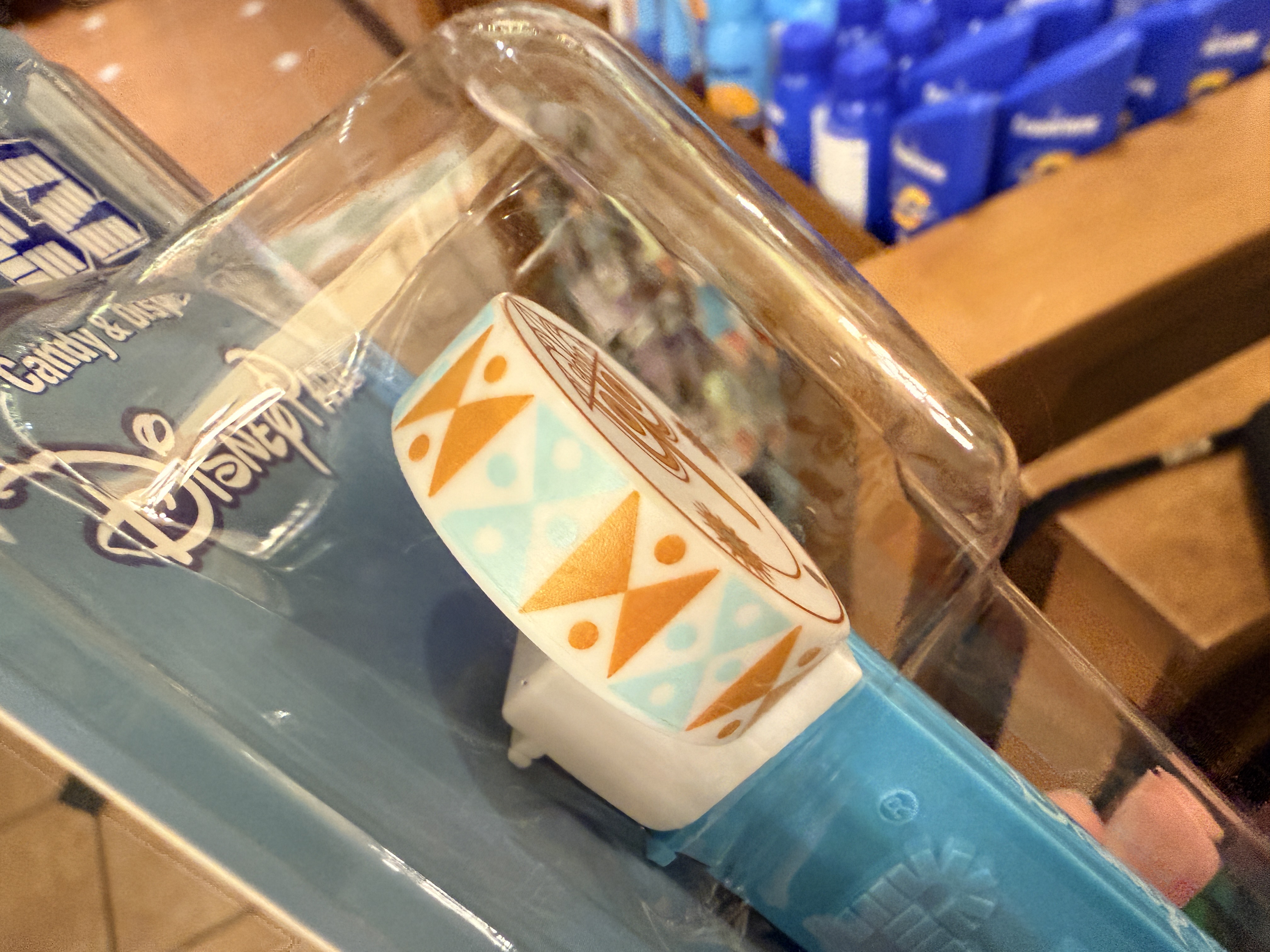 Then, we have the latest addition to the Disney Parks PEZ dispenser line, which has also featured the likes of the Hatbox Ghost, Figment, Cinderella, and more. This brand-new PEZ dispenser features the "small world" clock face atop a teal container marked with the Disney Parks logo.