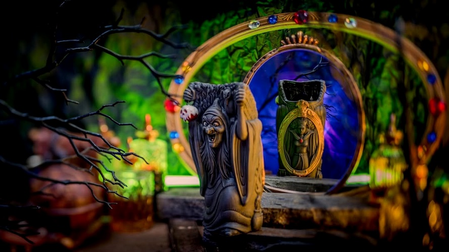Be careful not to fall under the spell of the Evil Queen, who features prominently in a new Halloween Tiki mug coming to Trader Sam’s Enchanted Tiki Bar at the Disneyland Hotel.