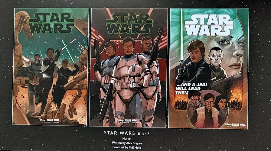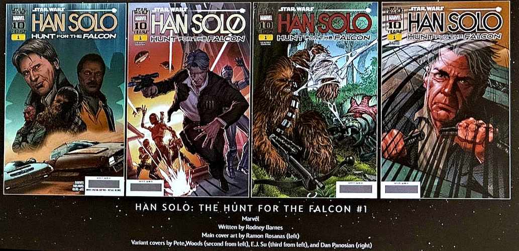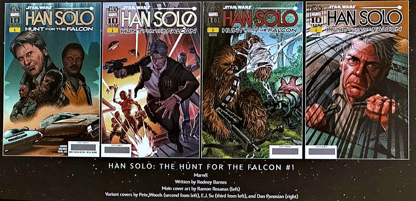 - A slate of new Marvel comics including Boba Fett: Black, White & Red, Legacy of Vader (featuring Luke Skywalker), Han Solo: Hunt for the Falcon, and Jedi Knights.