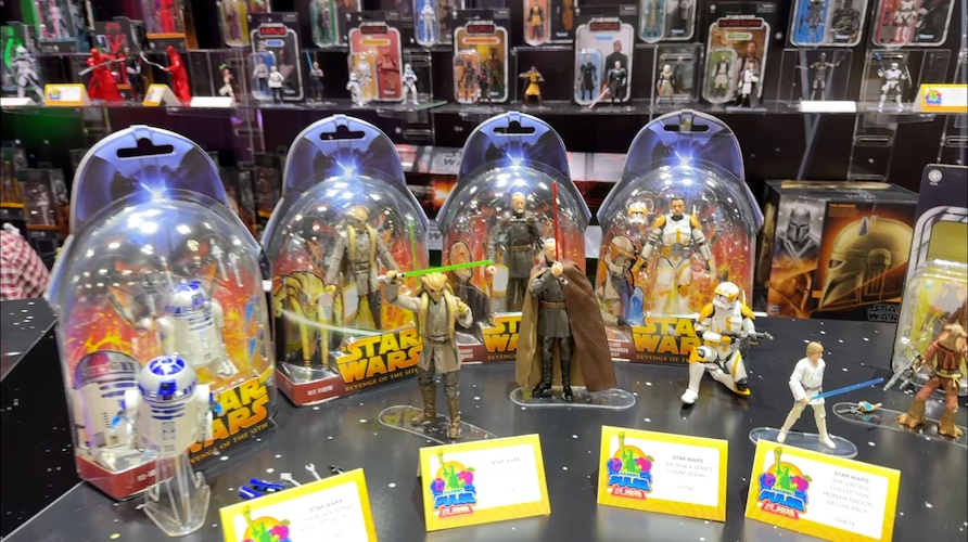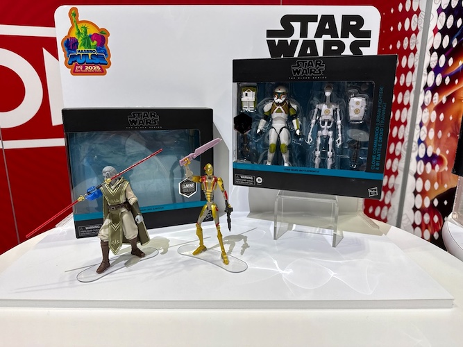 Deluxe 2-packs and exclusives were a big part of this year’s display. These include new figure pairings such as Phase I Clone Trooper & Super Battle Droid and Dagan Gera & BX Droid (Amazon)..