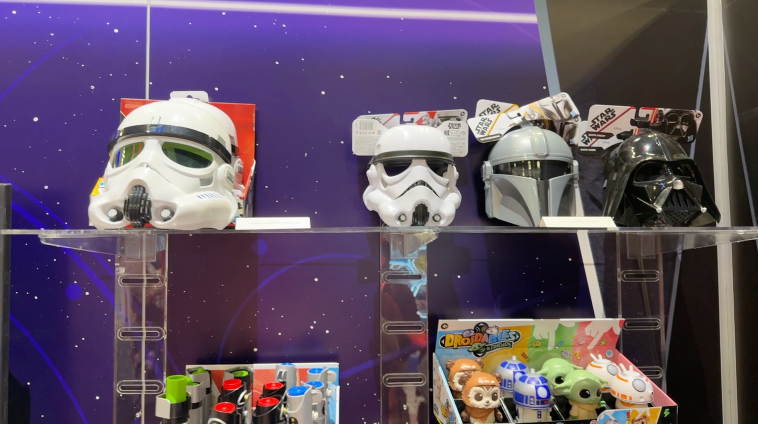 Hasbro’s Star Wars mask lineup lets kids become their favorite galactic heroes or villains with ease. A Darth Vader Electronic Mask ($29.99) is already available, which features character phrases, sound effects, red-tinted lenses, and an adjustable strap for a comfortable fit. A Stormtrooper version of the electronic mask was also on display, though not yet officially announced, it appears to share similar features and is likely to be released at a comparable price point.