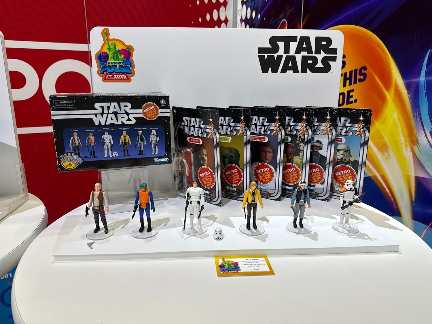 For collectors nostalgic for the Kenner era, Hasbro unveiled a new Star Wars Retro Collection box set themed to A New Hope as a Target exclusive. This 3.75-inch-scale multipack included six classic characters—Dr. Evazan, Walrus Man, Han Solo (in Imperial Stormtrooper disguise), Luke Skywalker (Yavin ceremony), a Rebel Fleet Trooper, and a Sandtrooper. True to the aesthetic of the late '70s and early '80s, each figure came with accessories like blasters and removable helmets to recreate memorable scenes. The set retailed for $59.99 and sold out quickly.