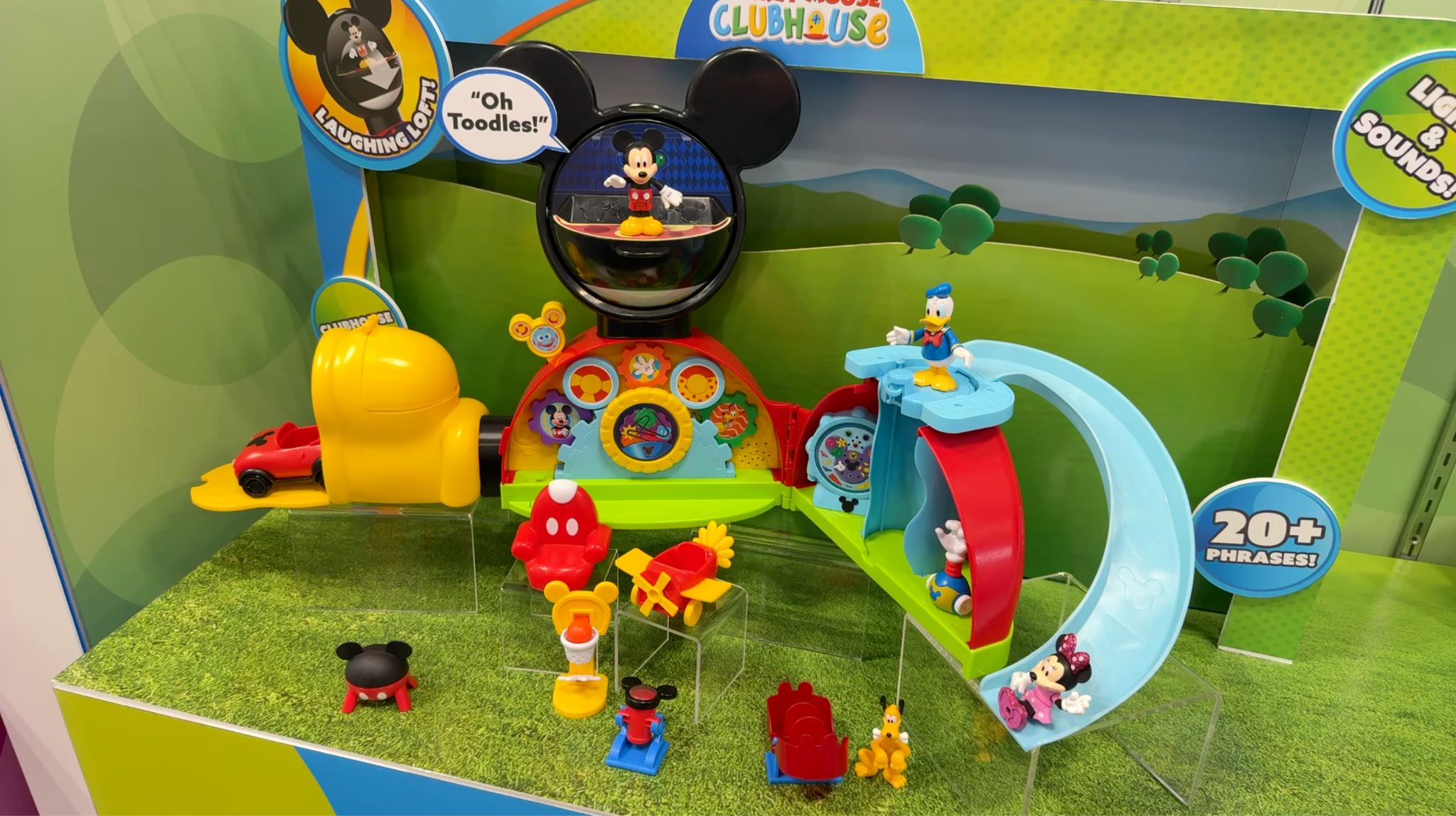 Disney Jr. Mickey Mouse Clubhouse Deluxe Playset brings the colorful world of Mickey Mouse Clubhouse+ home with a sprawling, interactive 16-piece playset designed for imaginative preschool play. Featuring poseable Mickey, Minnie, and Donald figures alongside Pluto and Little Helper, kids can activate lights, sounds, and over 20 Mickey phrases while exploring the Wacky Tube elevator, Mousekedoer gears, slide, plane, and convertible. Packed with hands-on activities and character-driven play, the set is priced at $49.99, recommended for ages 3+.