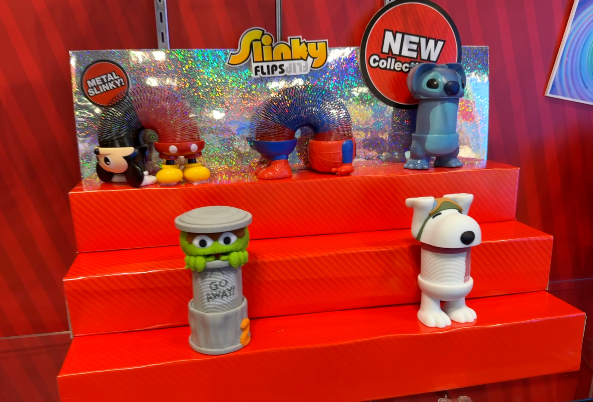 Slinky Flips give the classic spring toy a playful, fidget-friendly twist with character-inspired designs that flip and slink in all directions. The Slinky Flips Mickey Mouse features a stylized Mickey head on one end and his iconic red pants and yellow shoes on the other, connected by a black-and-red Slinky center that delivers the signature springy motion and sound fans love. Standing 6 inches tall, Slinky Flips combine nostalgic toy fun with modern fidget appeal, making them easy to flip, stretch, and play with from any angle. The lineup also includes character variants inspired by Stitch and Spider-Man. Priced at $14.97, Slinky Flips are recommended for ages 5+ and make fun birthday or anytime surprises for Disney fans, Slinky enthusiasts, and collectors alike.