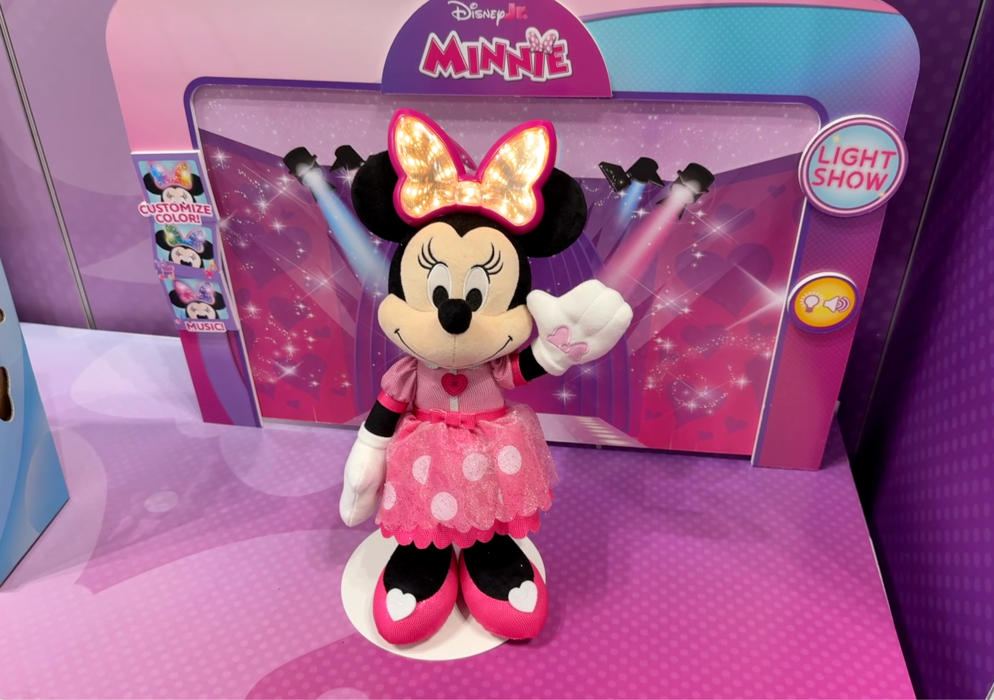 Minnie Mouse Colorfinity Feature Plush adds a glamorous, light-up twist to playtime with Minnie’s dazzling Colorfinity bow, which cycles through nine vibrant colors and sparkling patterns. Kids can help Minnie choose her look while she responds with over 40 phrases and sounds, reinforcing color recognition through interactive play. The 15-inch plush also includes a red-carpet-style backdrop for imaginative photo play. Priced at $34.99, the Colorfinity Minnie plush is recommended for ages 3+.