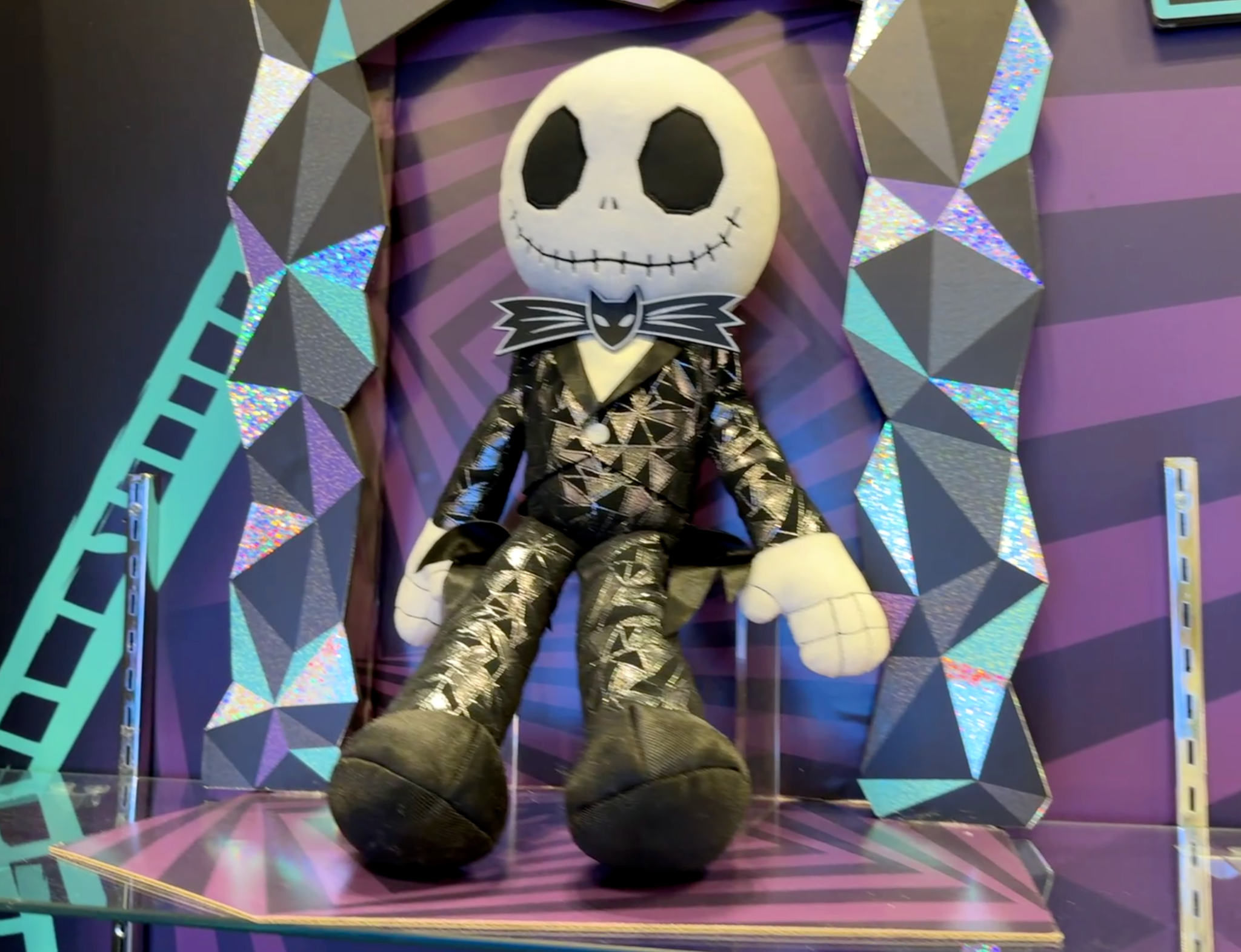 Disney Tim Burton’s The Nightmare Before Christmas Large Plush Jack Skellington delivers a striking, display-worthy take on the Pumpkin King, standing 19 inches tall in a shimmering black-and-silver suit complete with his signature bat bow tie. Crafted from velvety-soft mixed fabrics with embroidered and appliquéd details, this deluxe plush works equally well as a cuddly companion or a seasonal décor centerpiece that transitions effortlessly from Halloween through Christmas. Priced at $22.99, the large Jack Skellington plush is recommended for ages 3+.