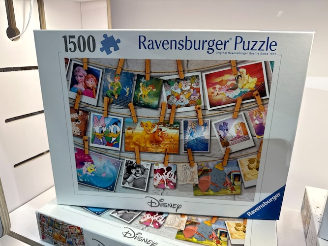 We also spotted this cute 1500 piece puzzle featuring photos of classic Disney characters hanging on clothespins.