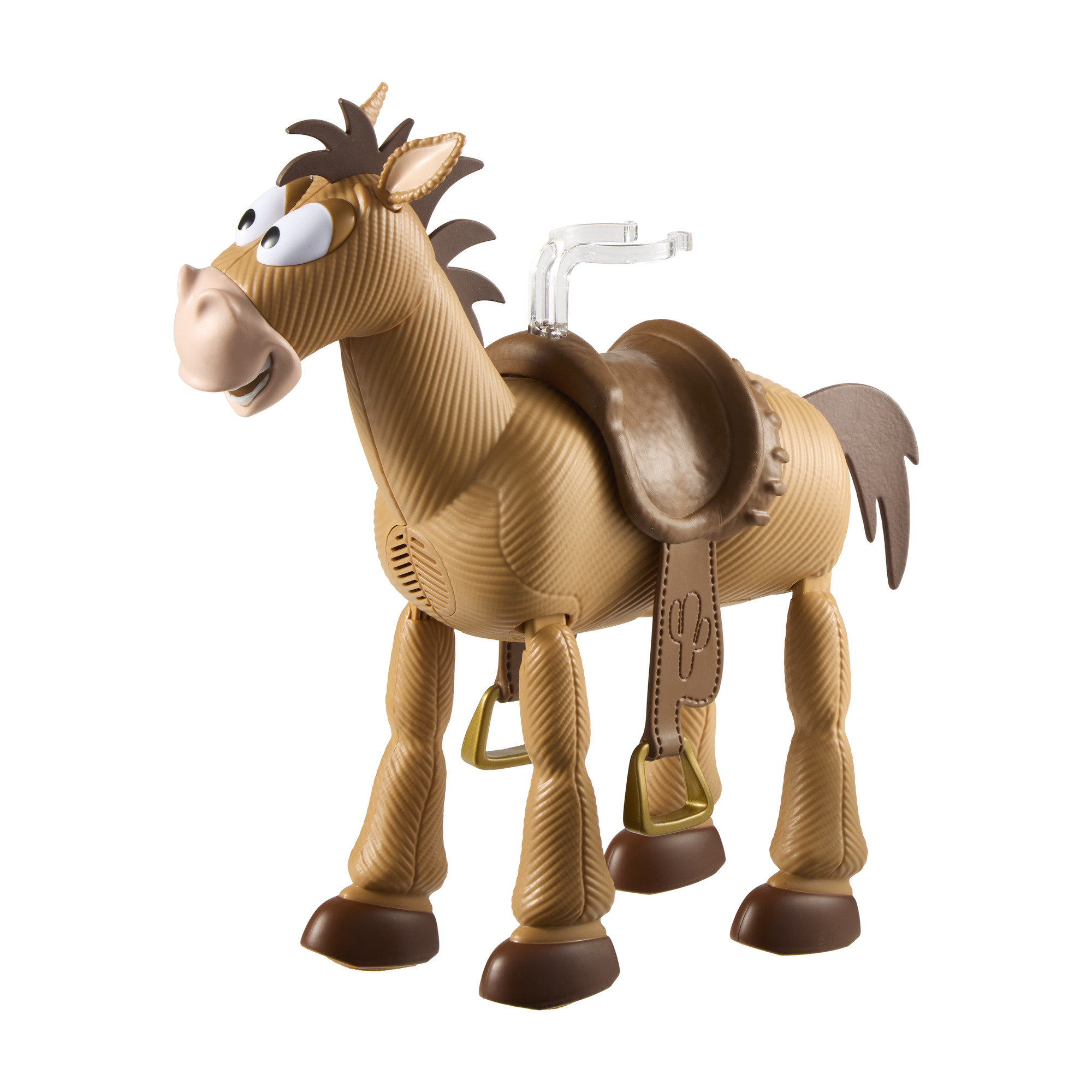 - This allows kids to place Woody, Jessie, or Buzz Lightyear in the saddle for a remote-control ride that includes sound, motion, and character-driven movement.