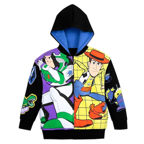 - Older fans will love the hoodie designed to look Buzz Lightyear’s chest and torso with its bold purple and green color-blocking aesthetic.
