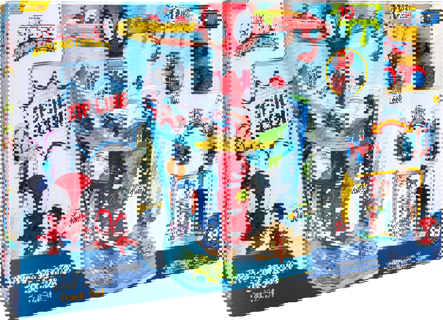 - From Jazwares, there's the Marvel Spidey and His Amazing Friends Construction Zone Chaos Track Set ($49.99), which features a two-foot-high race track with two courses.