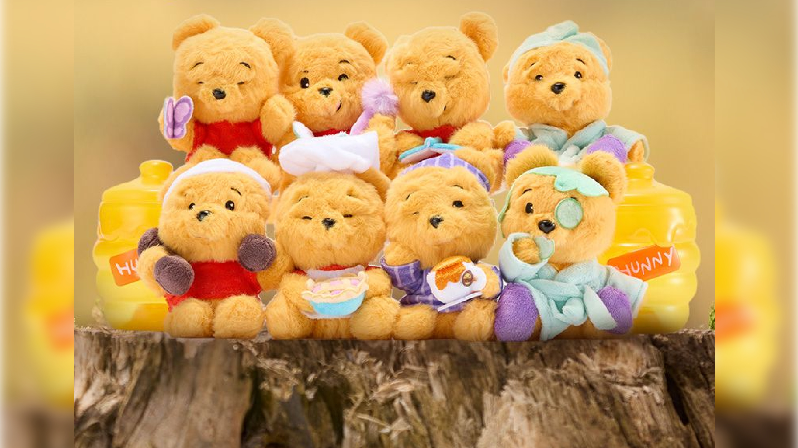 - One of the cute new arrivals at Disney Store is the Winnie The Pooh Mystery Plush series, showcasing Pooh Bear's moods throughout the day. Each blind box in this lineup presents one micro plush pal of Pooh practicing various activities. For added fun, the characters come packaged in a cute "hunny" pot!
