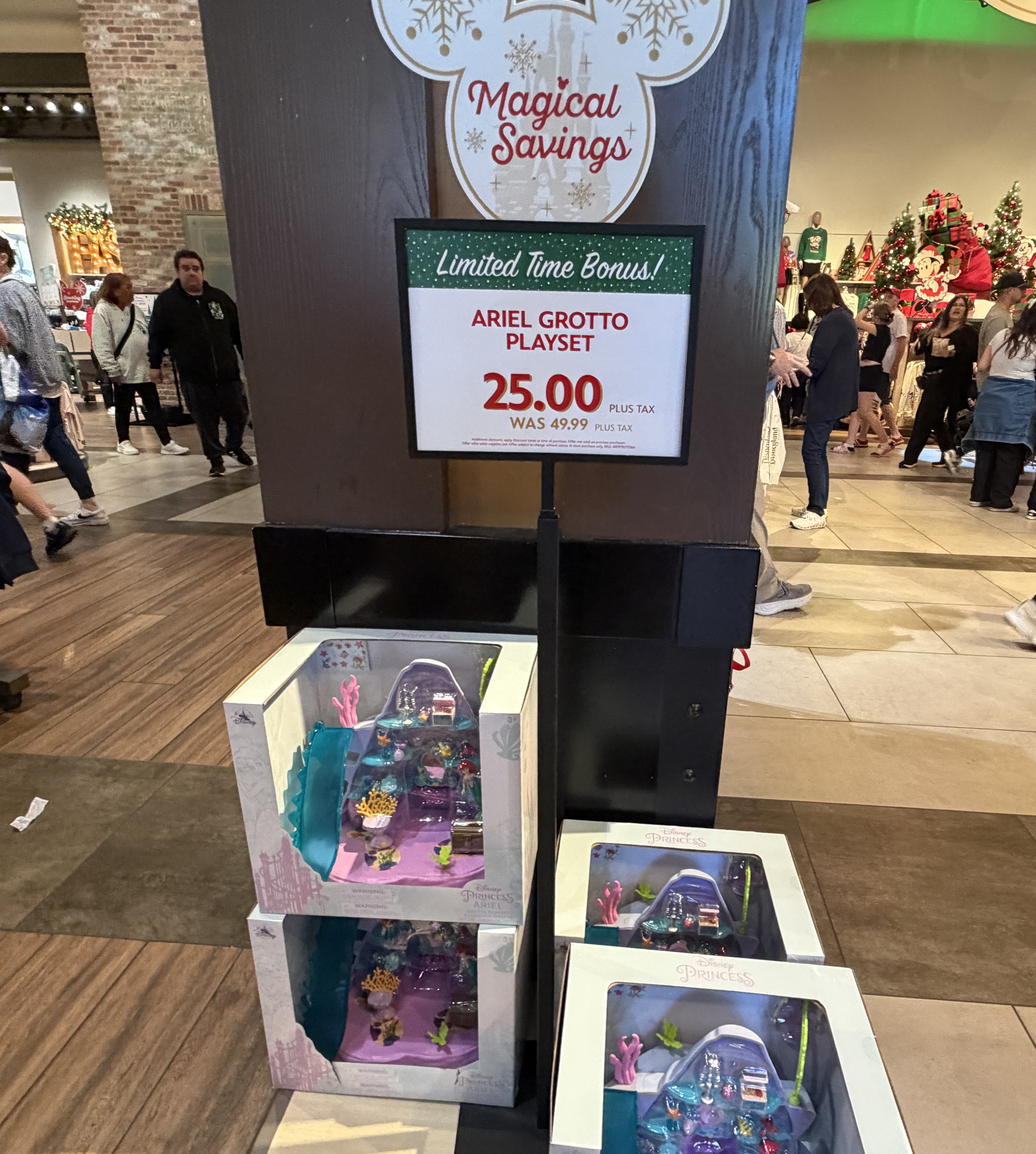 An Ariel's Grotto playset is available for $25.00, a savings of 50%.