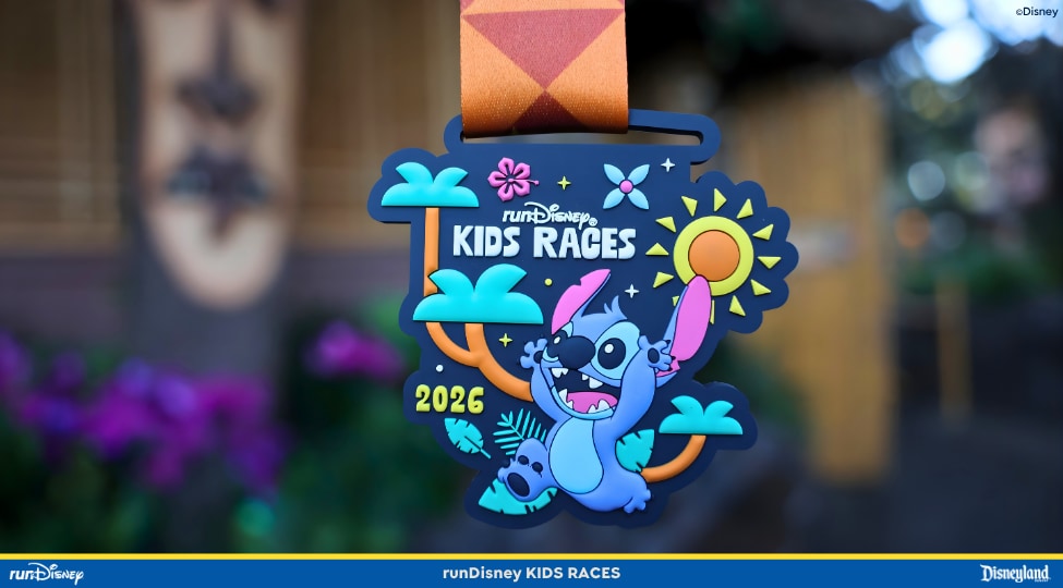 And Stitch is ready to run too on the runDisney Kids Races medal.