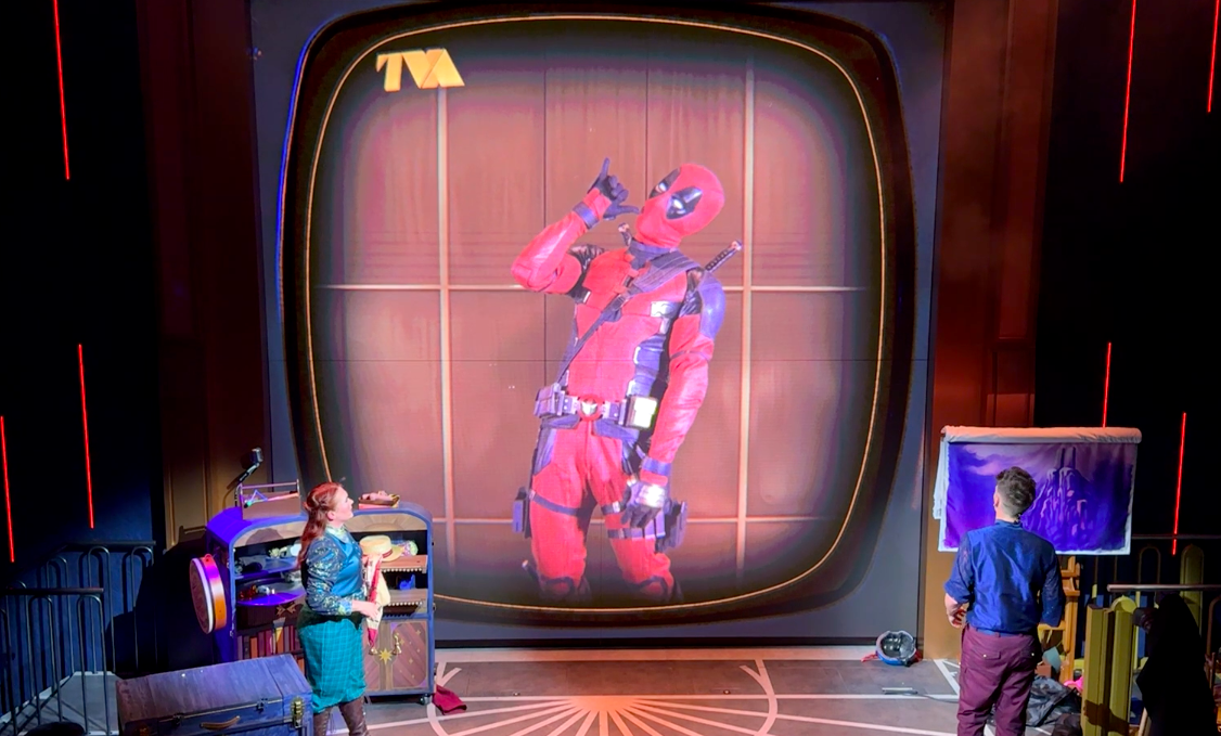 You've probably seen this one by now. Yes, the Merc with the Mouth makes an appearance aboard the Disney Destiny, in a surprise finale for With Great Power: A Marvel Comedy Show, even if he's only on screen. As you might expect, the show is for an 18+ audience, so Deadpool fits right in. While the show certainly pushes the envelope on several occasions for what you might expect to see aboard a Disney Cruise, Deadpool takes things a step further. While we don't get any of his trademark violence in this show, his wit and very specific brand of comedy are on full display.