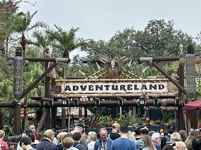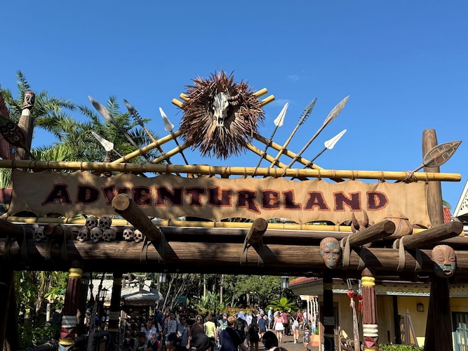 - Since its opening in 1971, the gateway to Adventureland at the Magic Kingdom has beckoned visitors with its tribal headgear and other adventurous items.