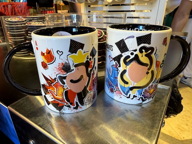 - You’ll also find the same design on a white mug with additional accidents that are reminiscent of playing cards.