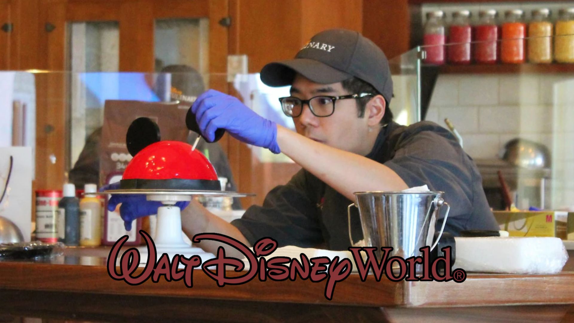 - The Mickey Mouse Dome Cake features chocolate chiffon cake, milk chocolate mousse and orange pate de fruit jelly.