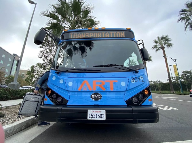 - Along with the ART bus system, which traverses through the resort area stopping at various hotels and destinations, there are also systems that shuttle guests from John Wayne/Orange Country Airport called EVE, as well as a smaller system in the downtown Anaheim area that services local businesses and the popular Anaheim Packing District called FRAN. Best of all, this service (which as of press time only operates on weekends), is completely free.