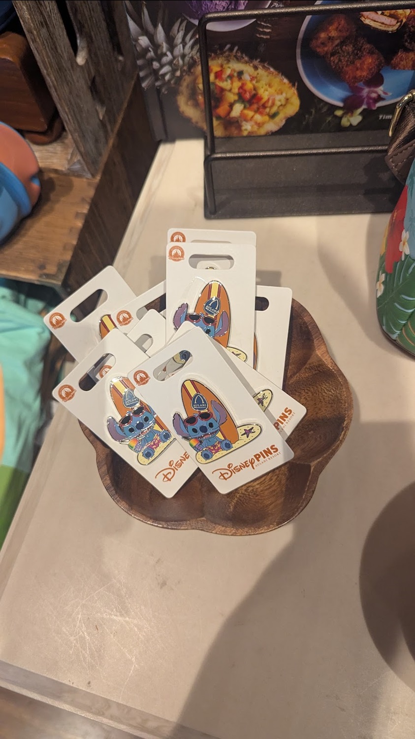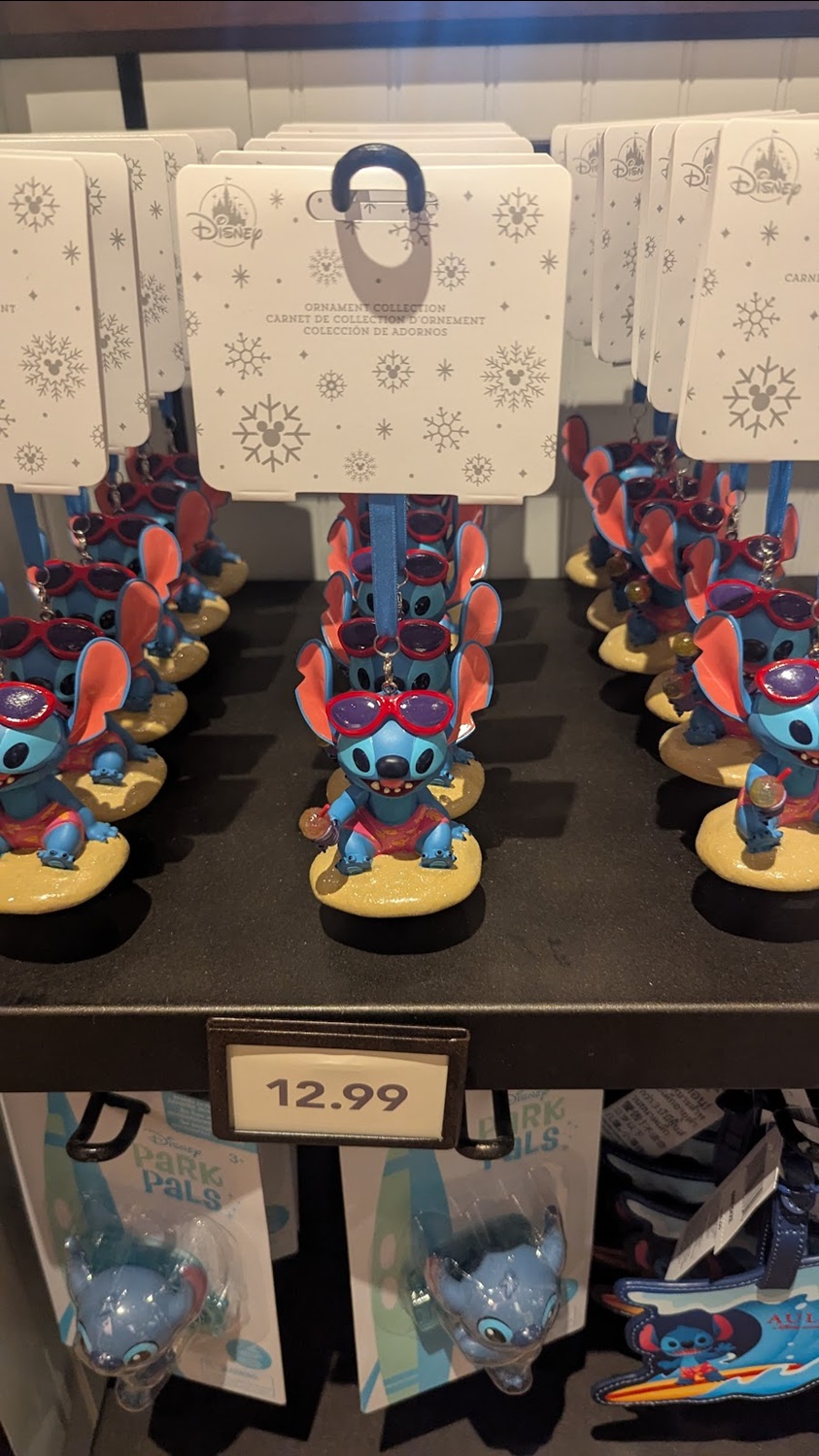 The design motif of a stylized Stitch in beach garb also carries over to a number of items and accessories, including a magnet, luggage tags, water bottles, pins, and more at the location.