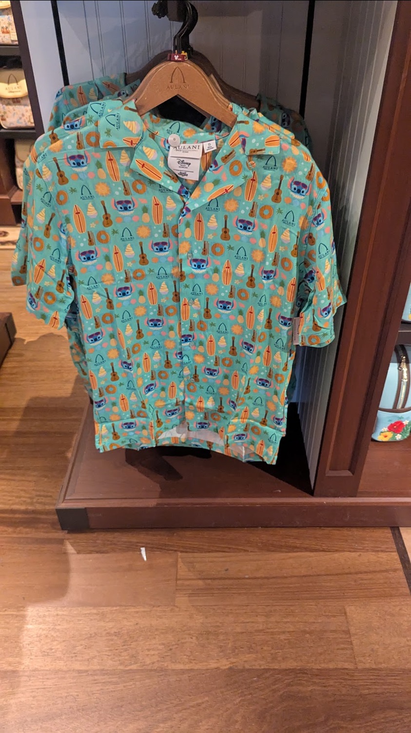 Of course the standout apparel as the requisite Spirit Jersey option, this one featuring the resort name along with a stylized version of Stitch, appropriately decked out for the location. There is also a cabana-style button down shirt that also features the character with the Aulani logo.