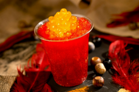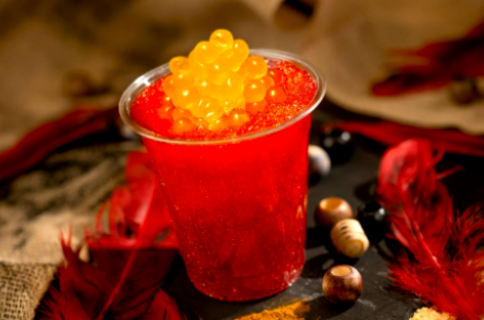 - Just around the corner at Pongu Pongu, guests can cool off with the Nightwraith Blaze. This vibrant slushy mixes blood orange, lychee, and wildberry flavors, topped with a glow cube and passion fruit juice-filled pearls. For adult travelers, this beverage is also available with a float of Tito's Handmade Vodka.