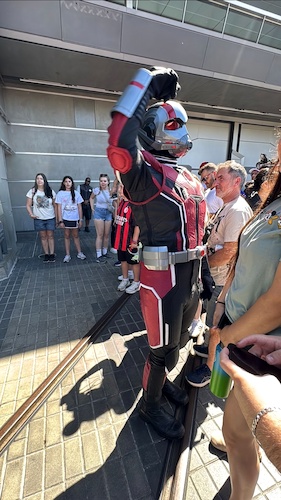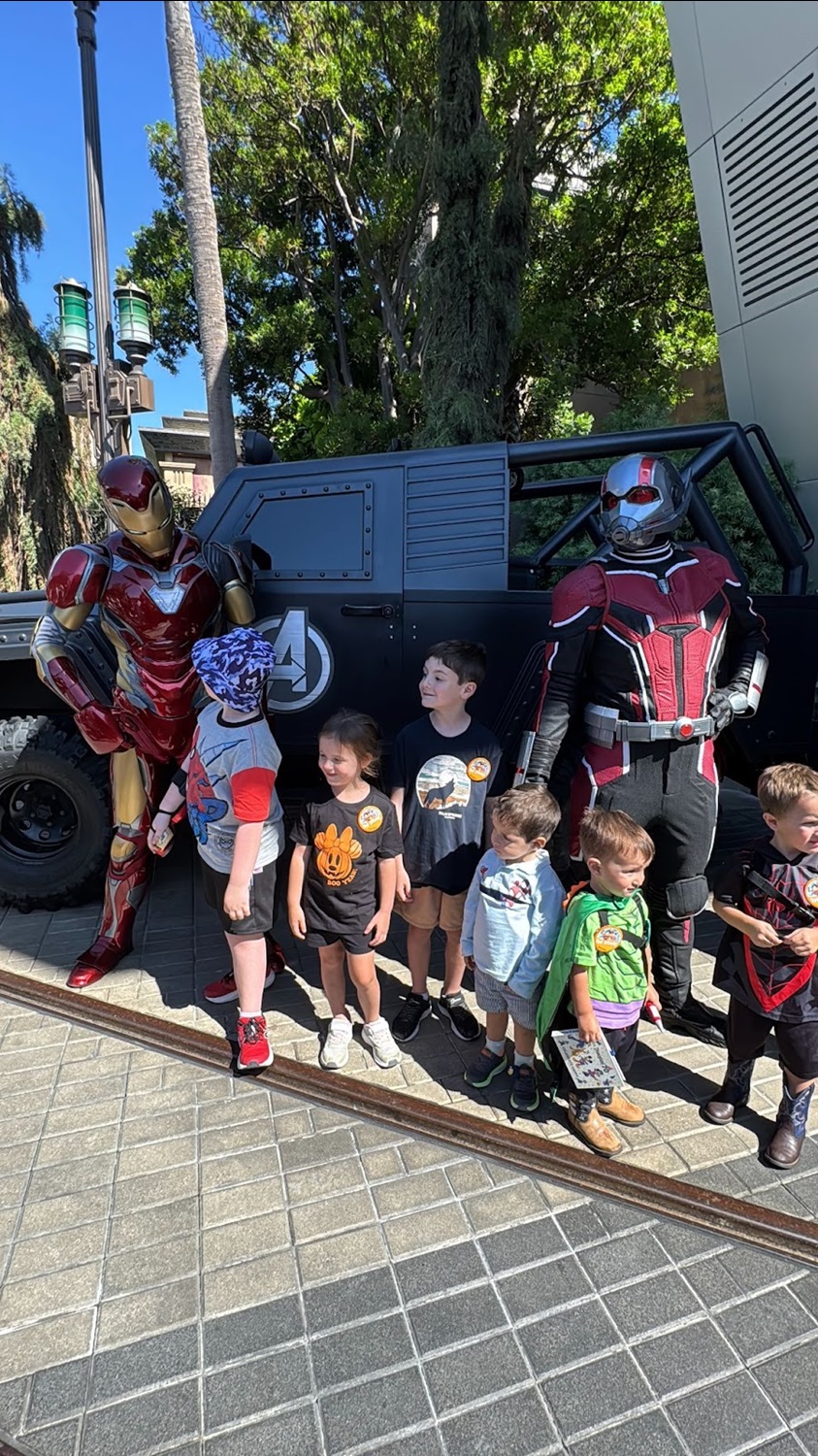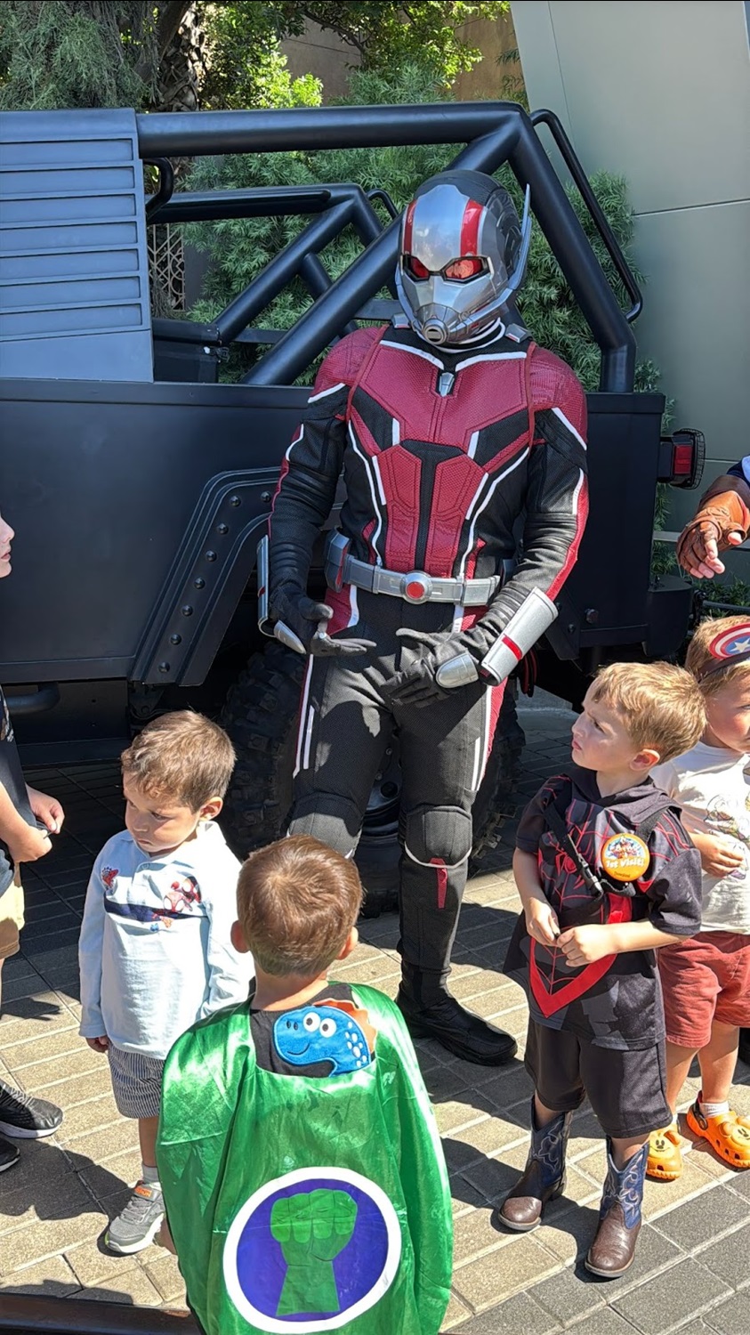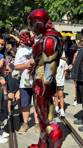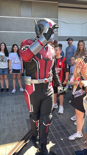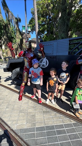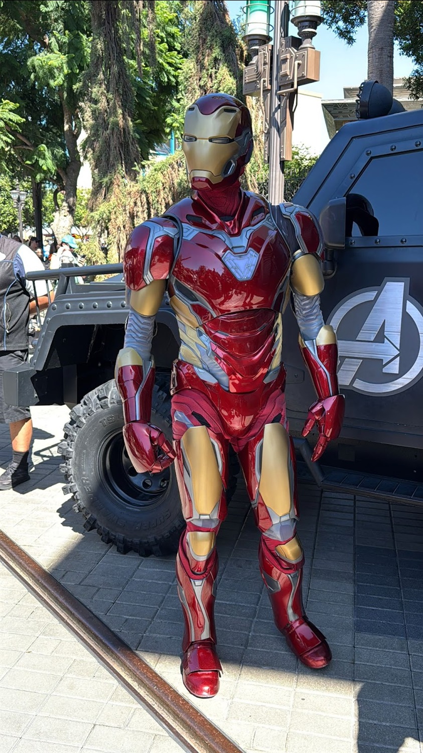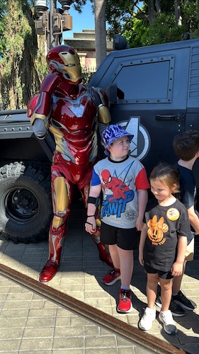A new superhero character moment is currently taking place at regular intervals at Avengers Campus in Disneyland Resort’s Disney California Adventure theme park. Different combinations of Marvel heroes (depending on who is around at the time, I’m guessing) will gather around the Avengers’ jeep vehicle, pose for a group shot, and then interact with guests in the immediate area.