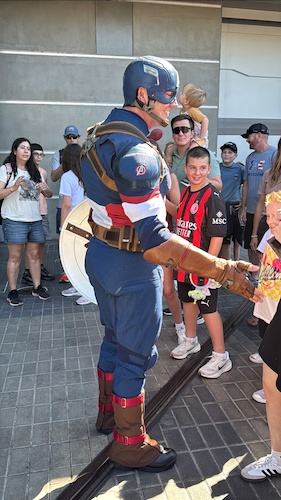 - I also returned for the subsequent performance of this moment later in the afternoon to capture some vertical images, which you can see below. This time Captain America was part of the gathering from the beginning, but there was no Black Widow or Star-Lord.