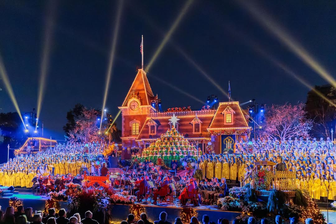 - Each year, the 600-member candlelight choir parades down Main Street U.S.A. for two performances each night in the park’s Town Square, where singers that hail from Disneyland Cast Members to members of local community choirs perform along with a live orchestra, handbell players and fanfare trumpeters.