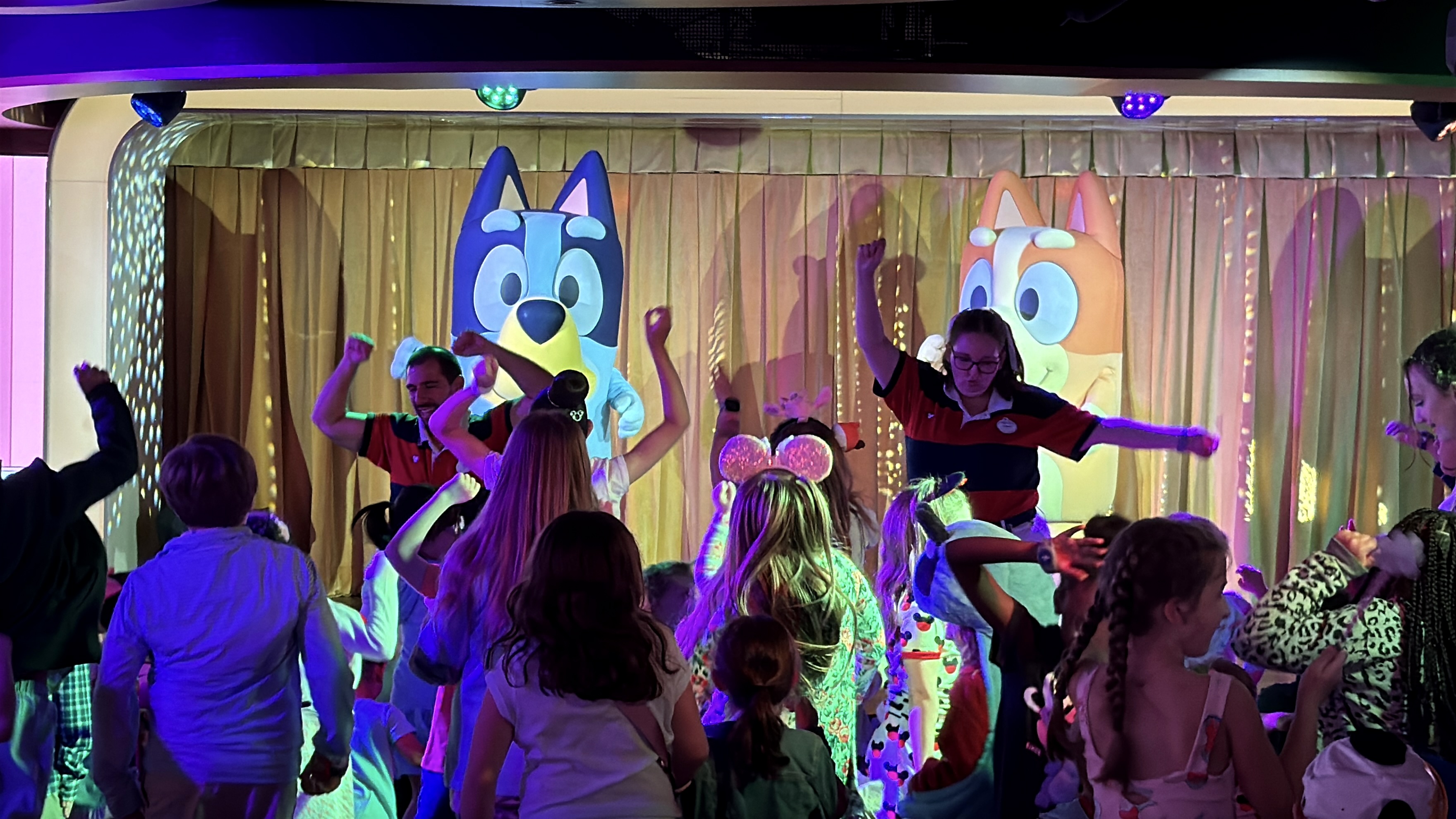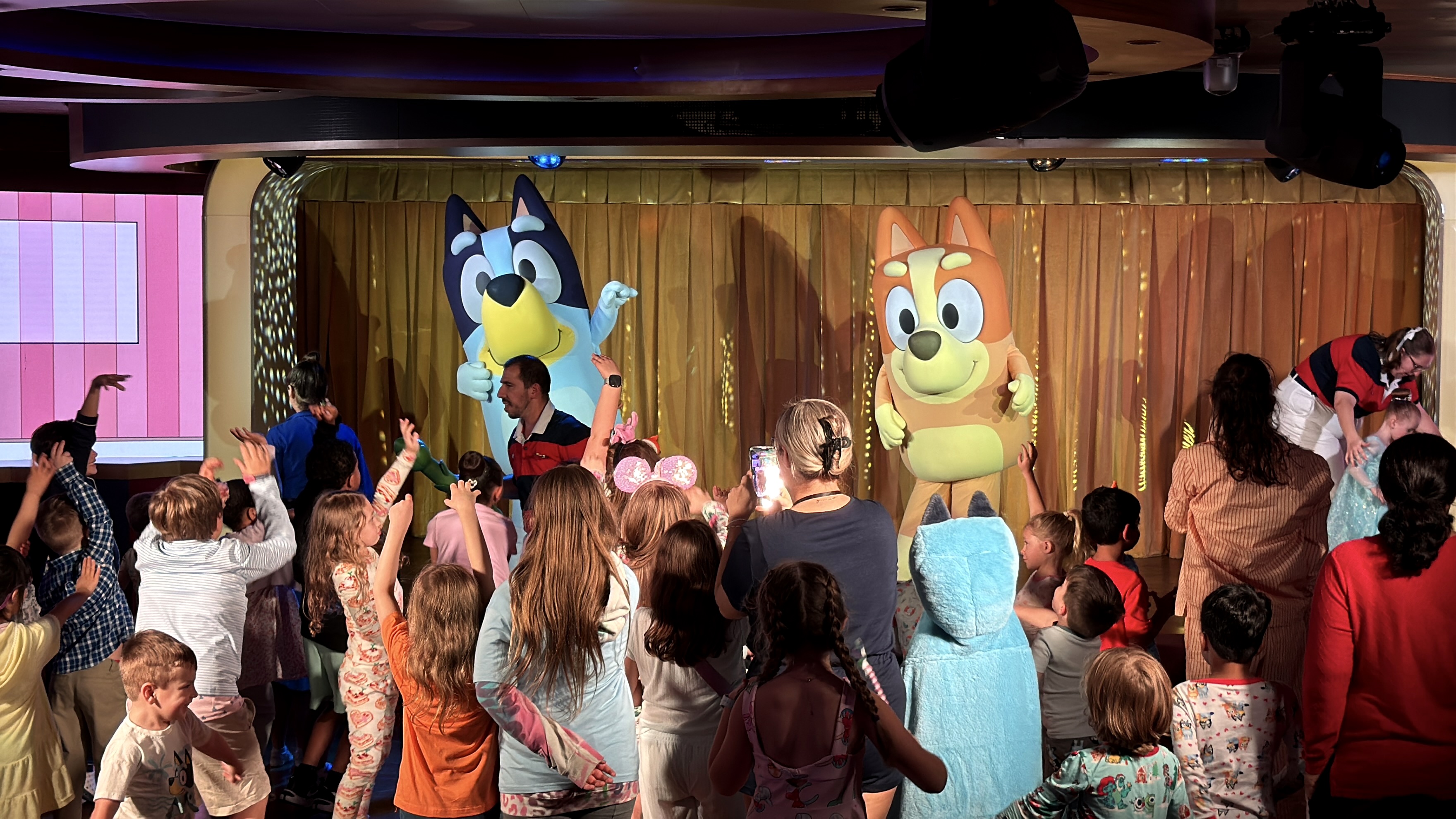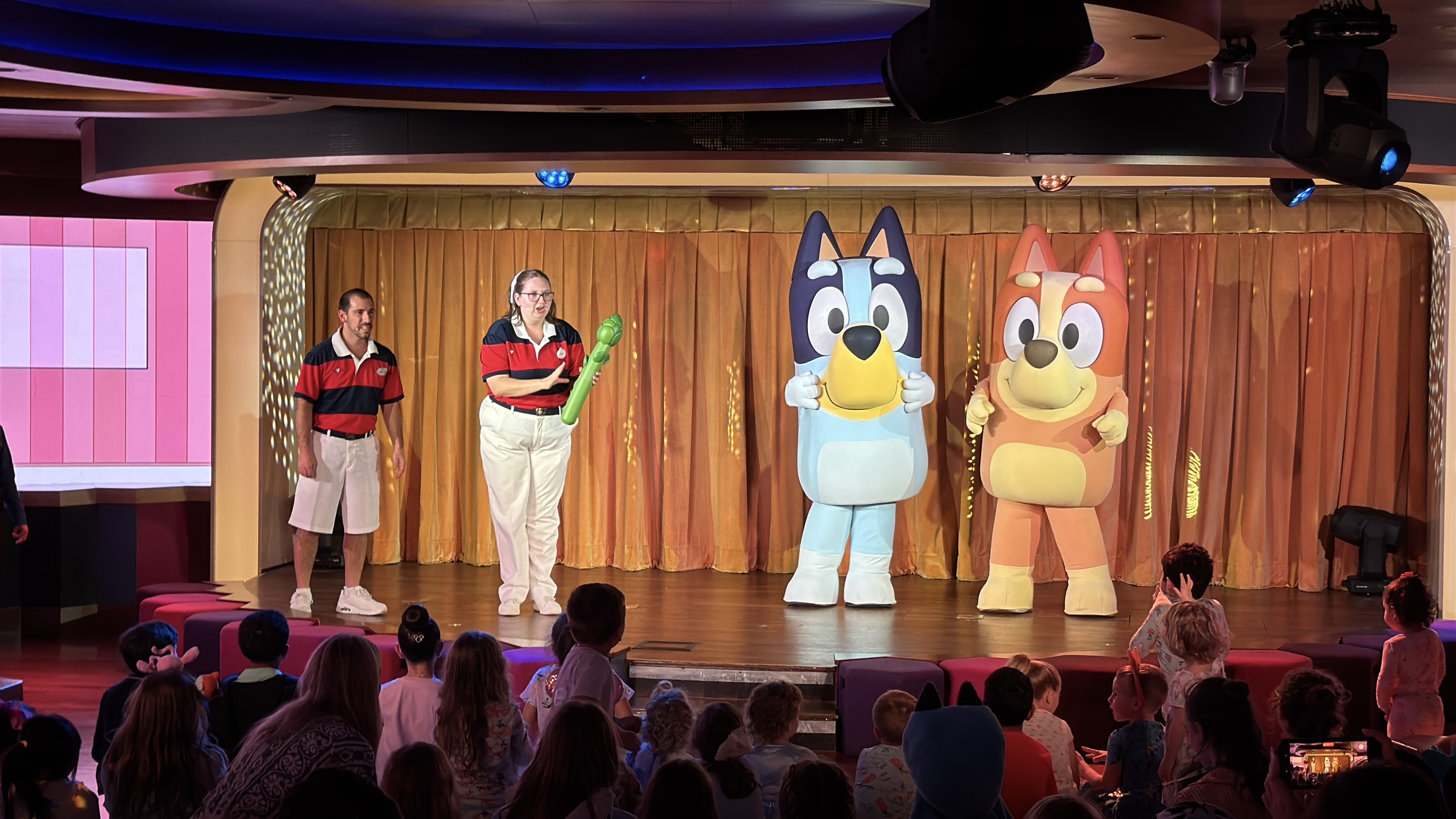 - During our sailing, we caught Bluey and Bingo appearing in the D Lounge venue for meet and greets.