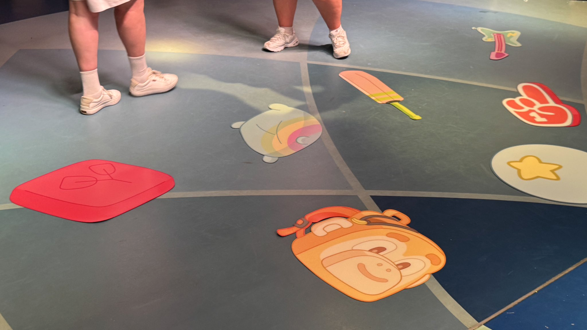 - Utilizing the club’s open floor space, oversized decals of items from the Heeler home (including a kiwi-slice rug, a backpack, and a cricket bat) serve as "safe zones" in an immersive game of "The Ground is Lava."
