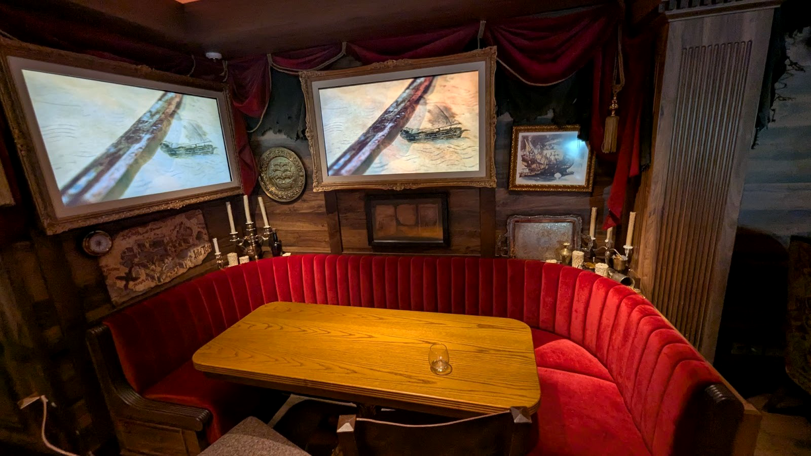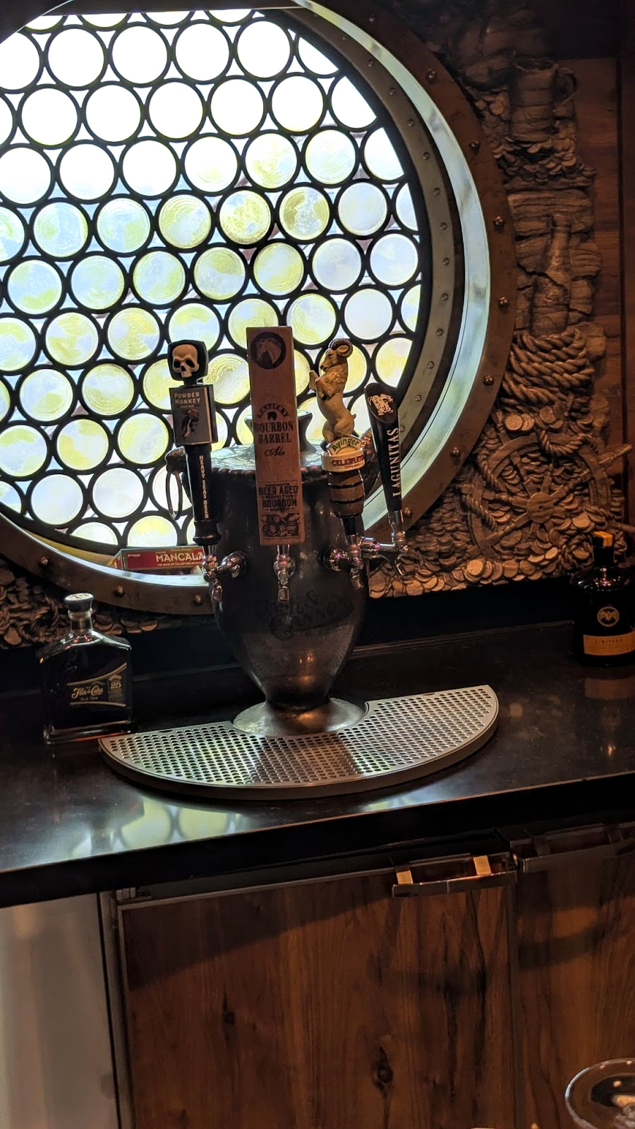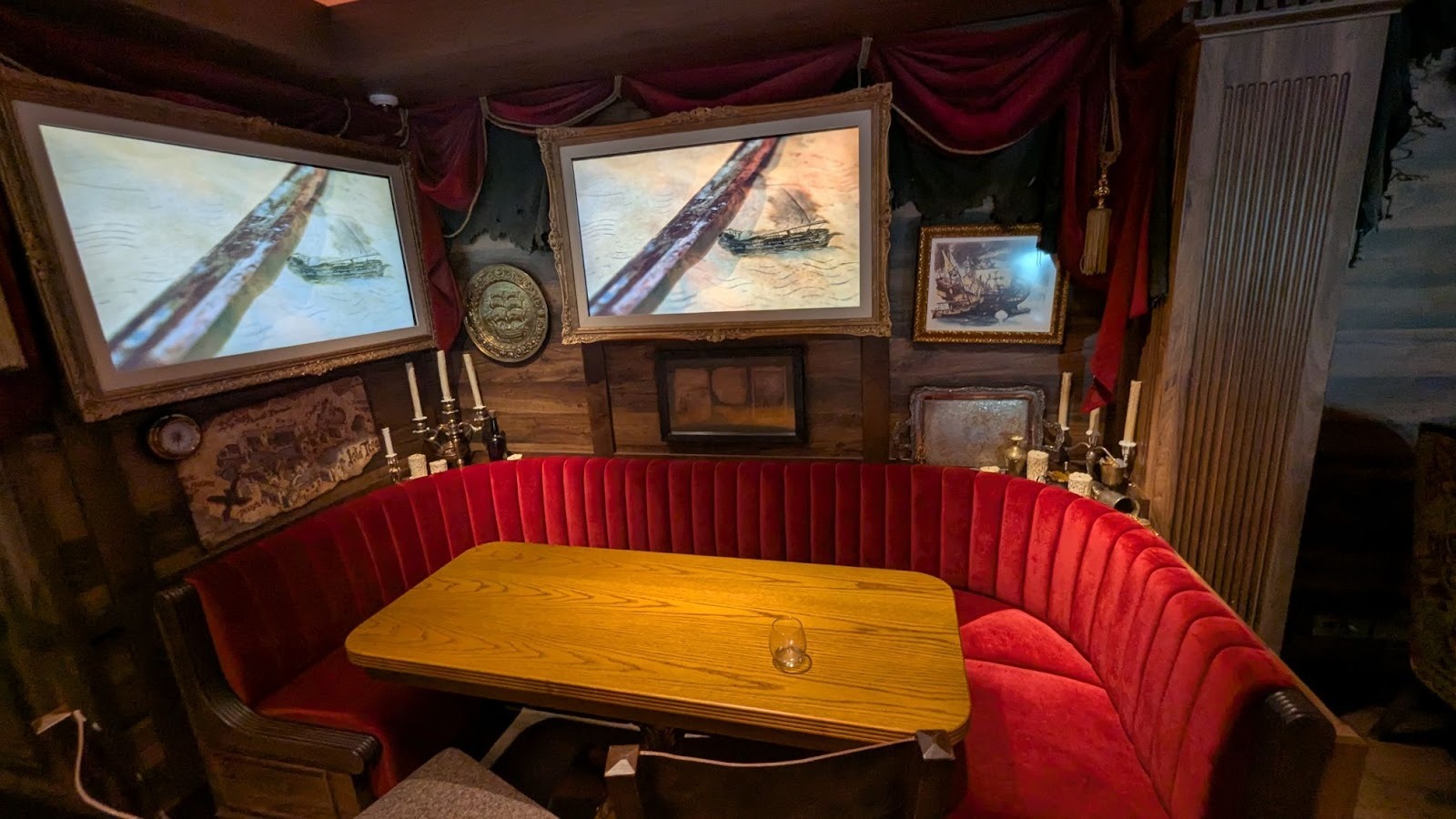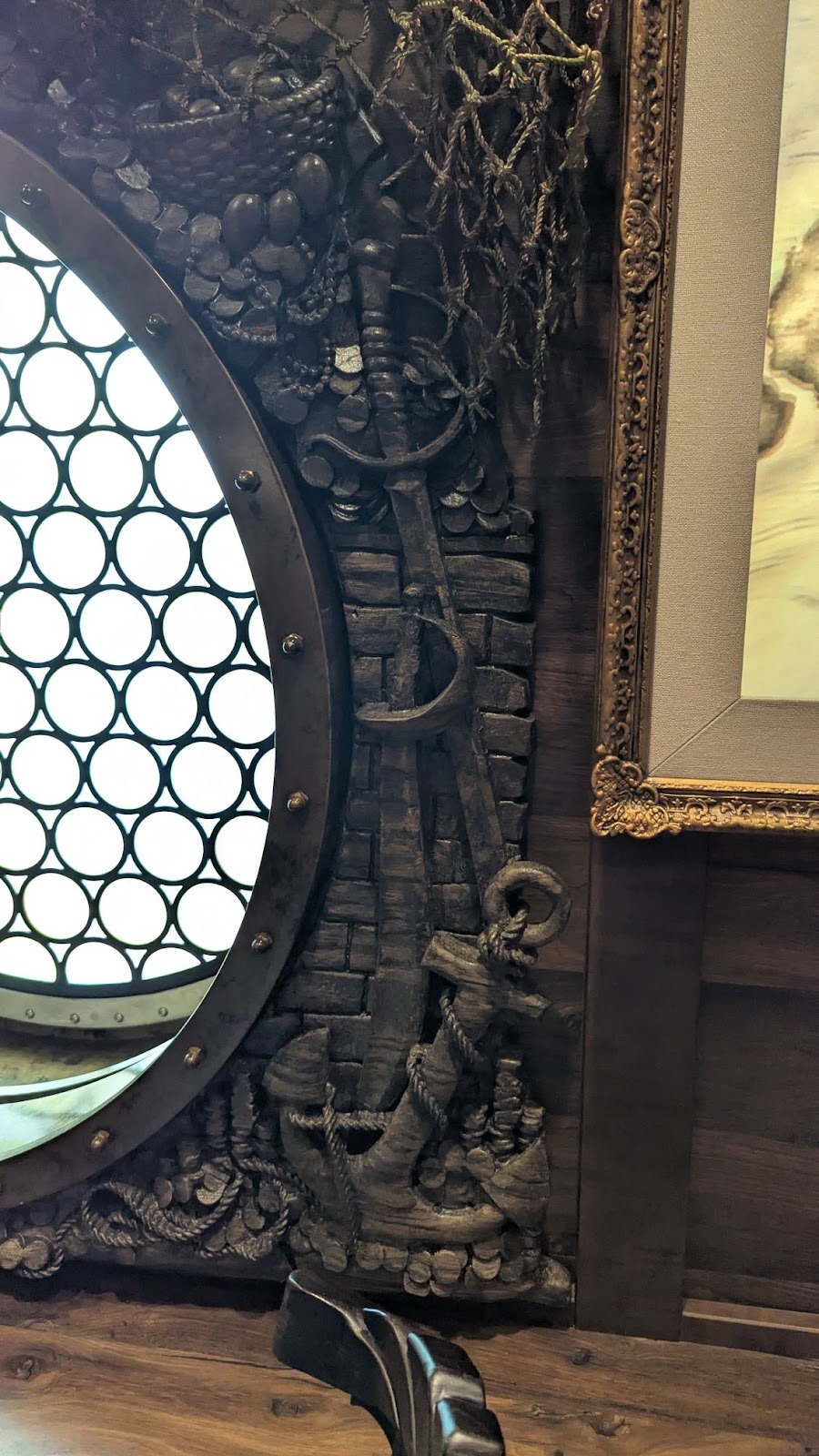 - The entire venue is loaded with nautical motifs and pirate iconography, including:
